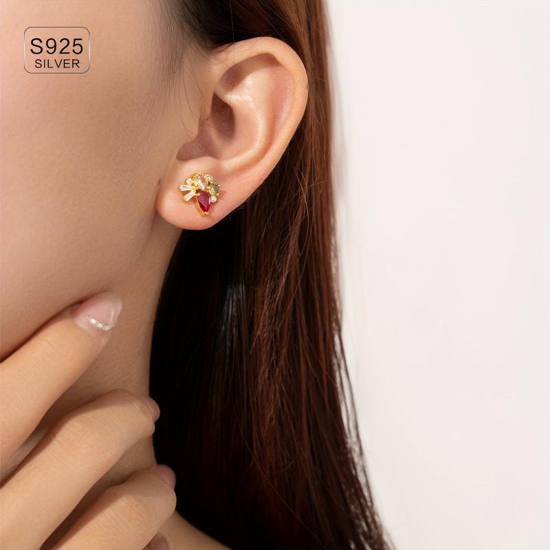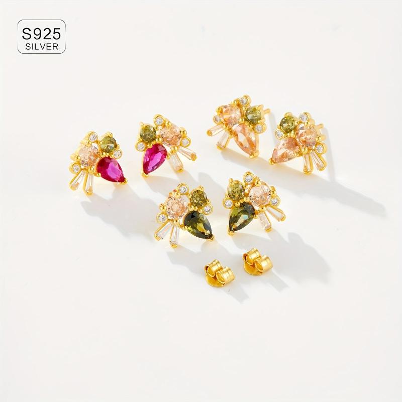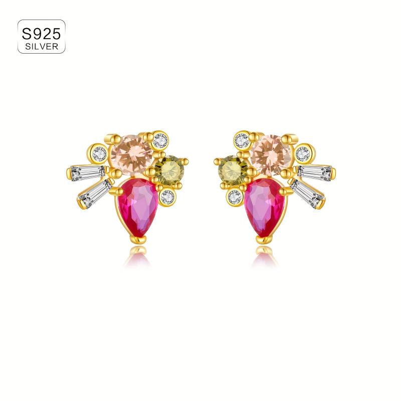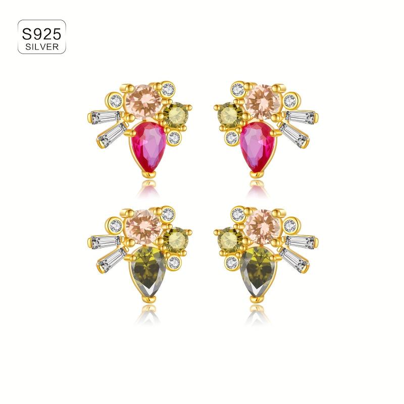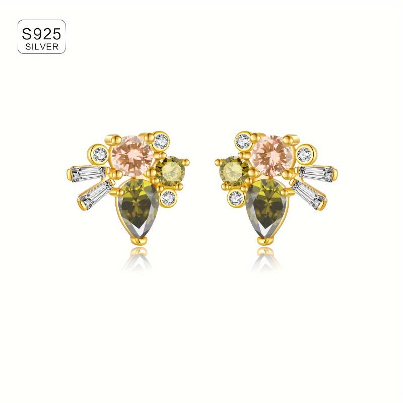 925 Sterling Silver Ladies Earrings Vintage Style Colourful Zirconia