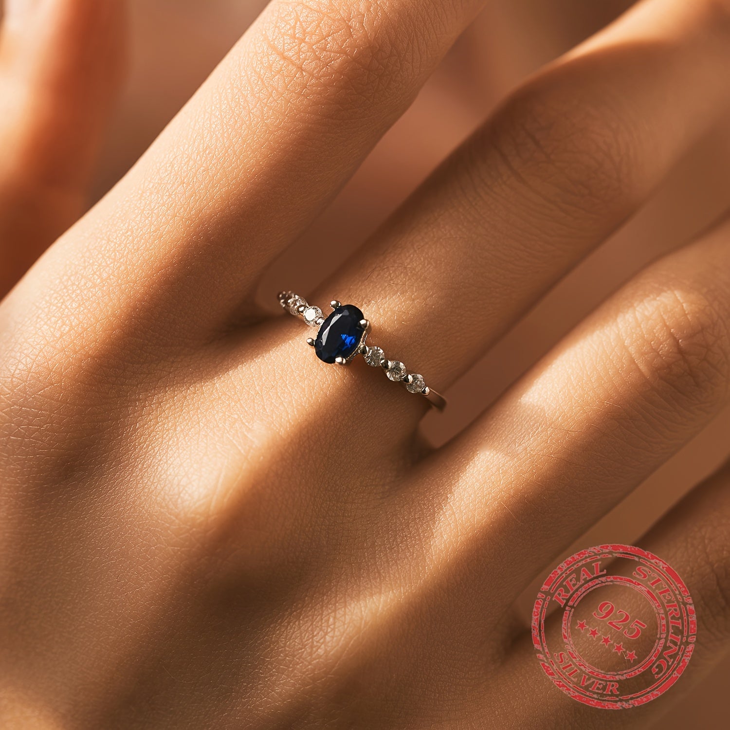 925 Sterling Silver Oval zirconia Ring Vintage Women Statement Jewelry