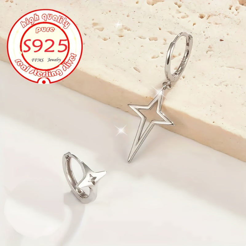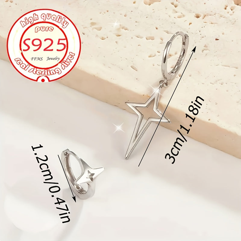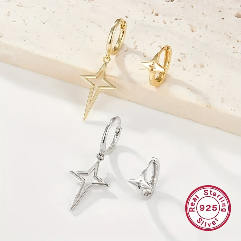 These asymmetrical star hoop earrings are perfect for a celestial hip hop style. Made with hypoallergenic 925 sterling silver and 14K golden plating, they are lightweight and stylish.
