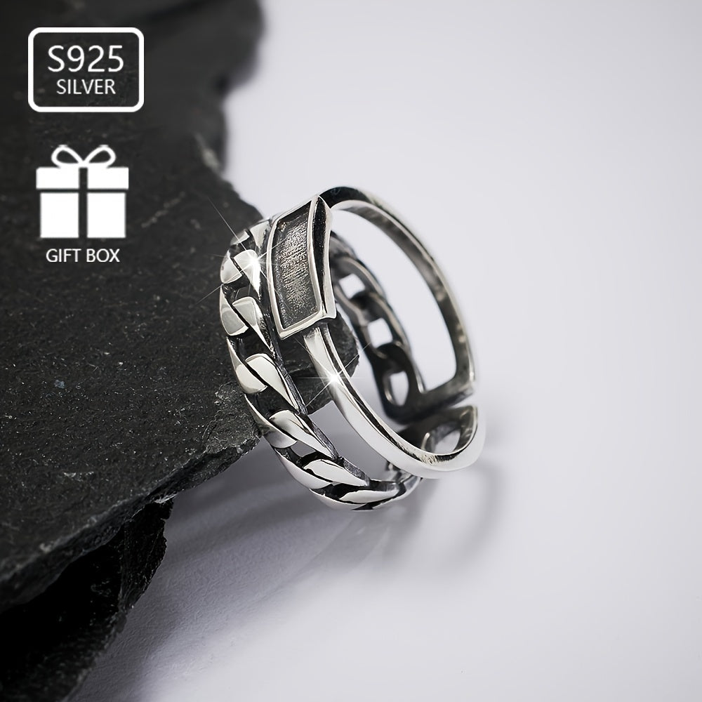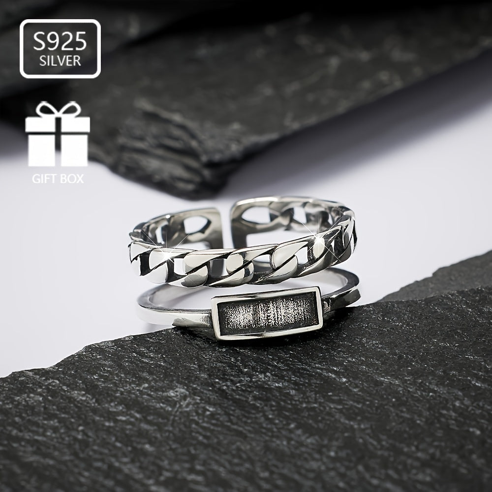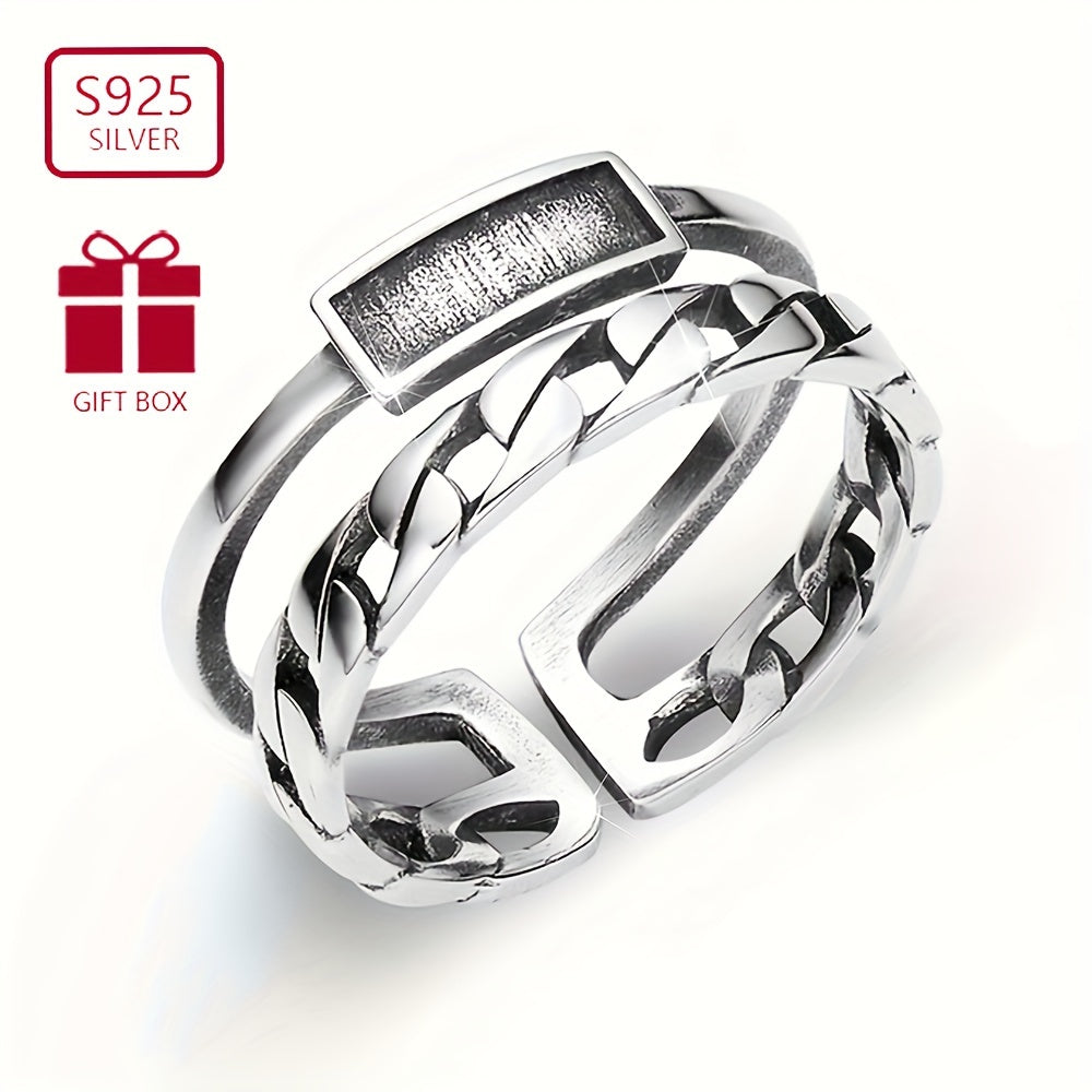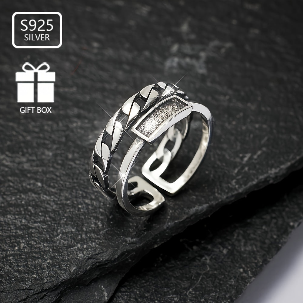 925 Sterling Silver Vintage Double Thai Silvery Ring Open Ring