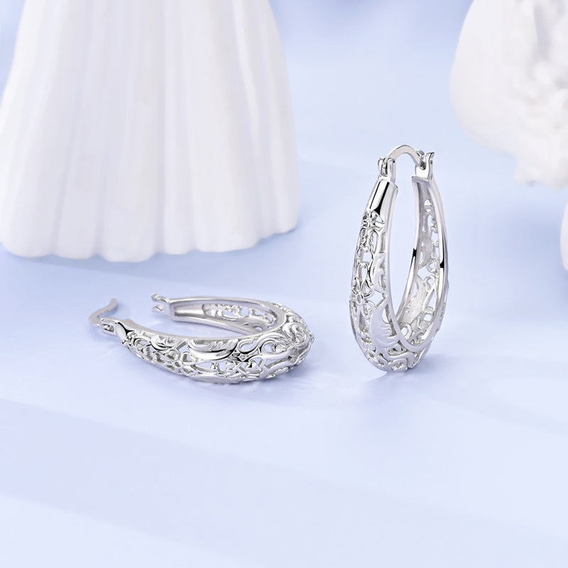 Elegant and hypoallergenic earrings featuring vintage flower design with cane cutout. Perfect for adding style to any outfit.