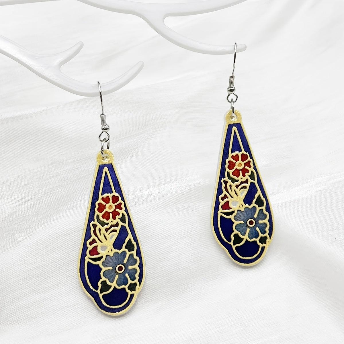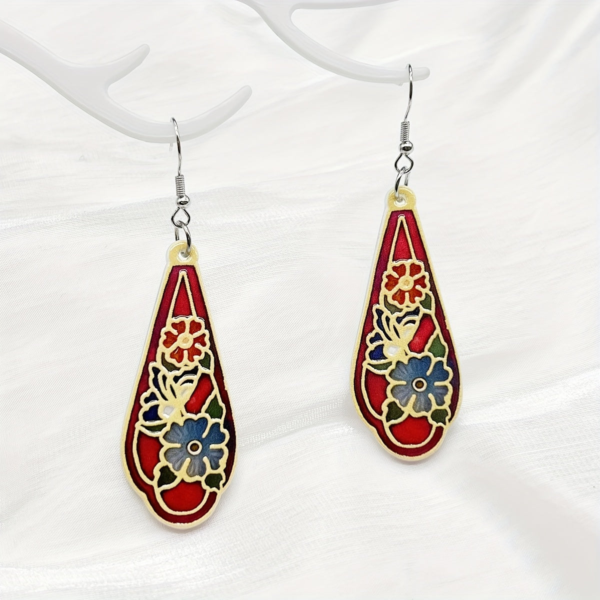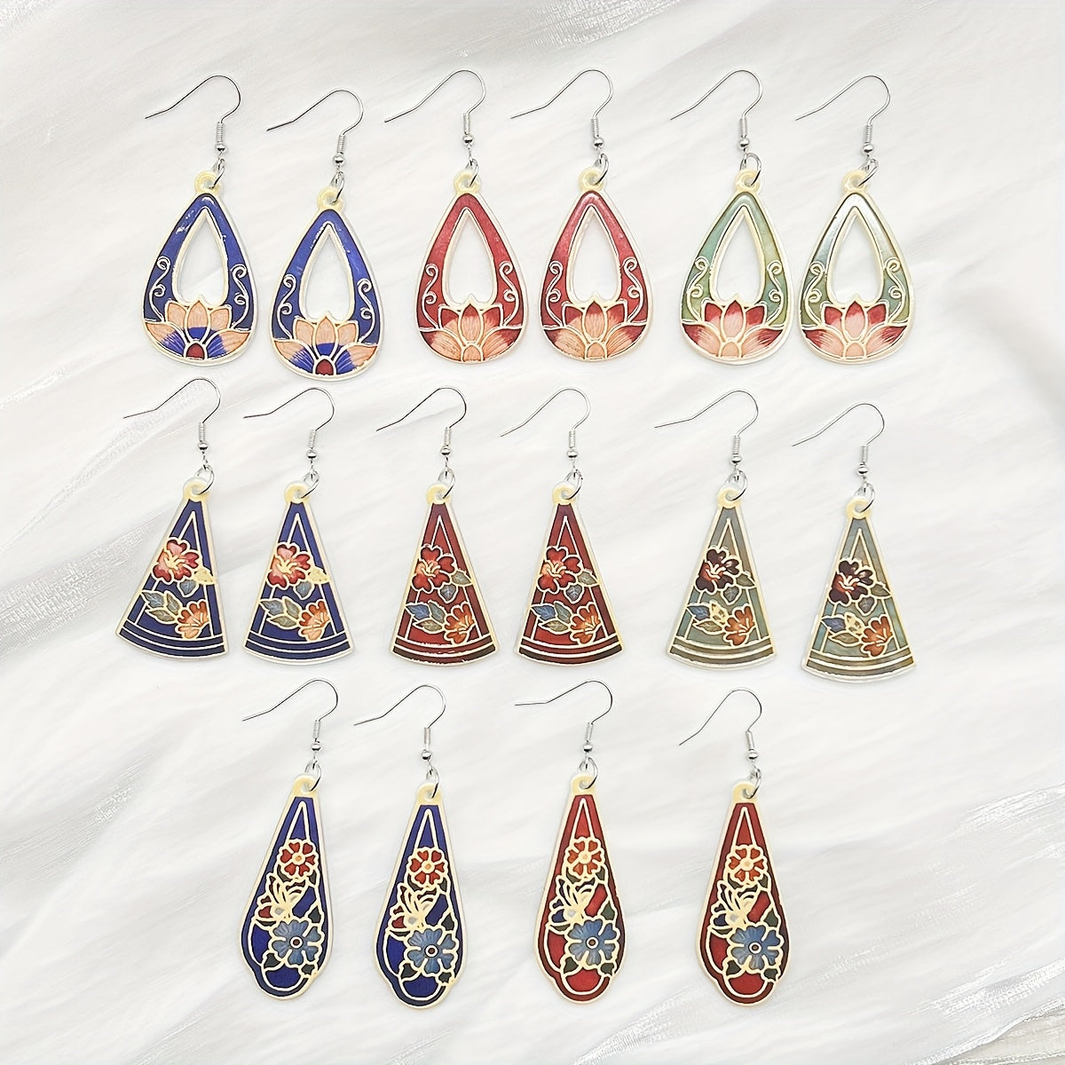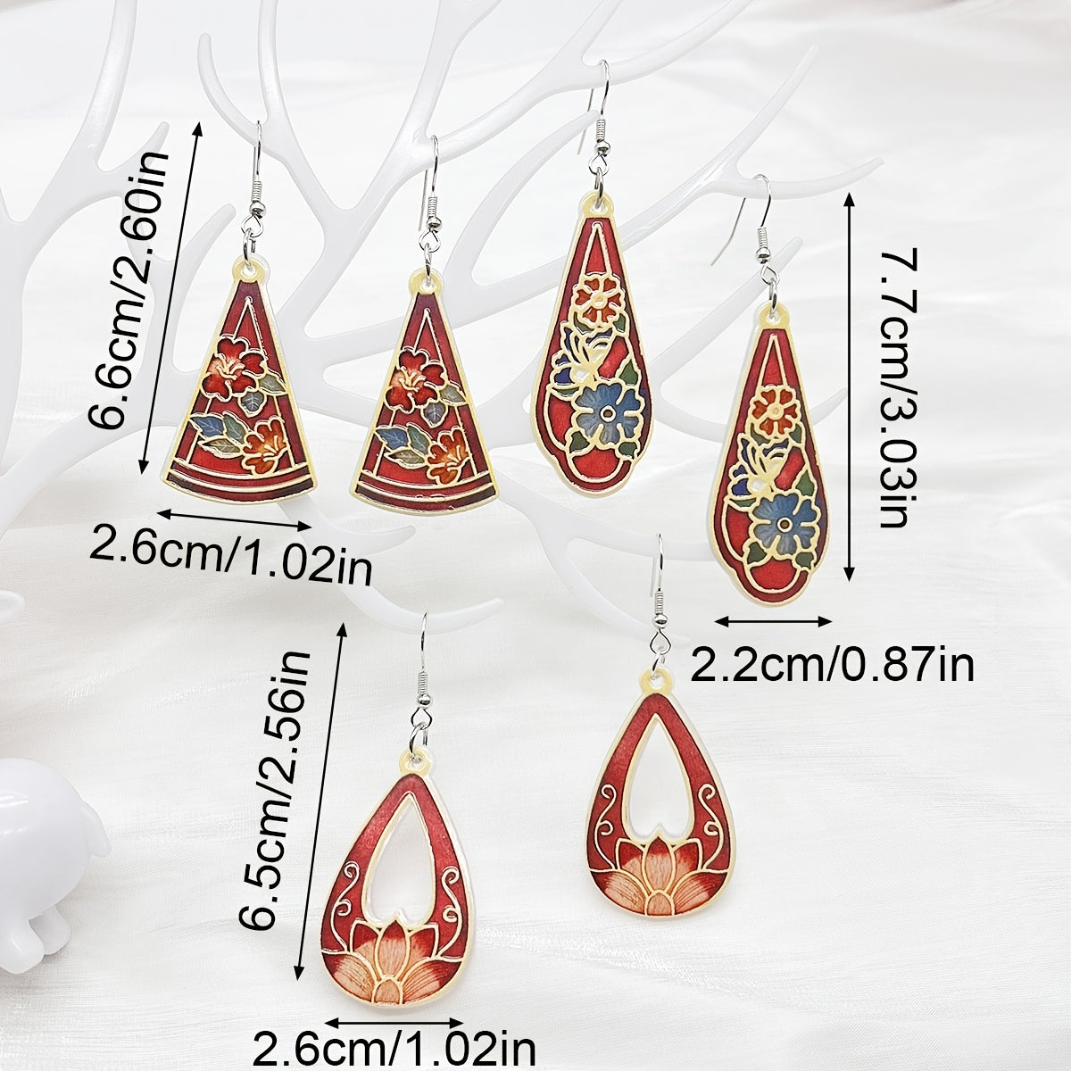 Get this 8 pairs set of acrylic French retro ethnic style pendant earrings with 3D embossed floral designs. These classic vintage earrings are versatile and perfect for daily wear.