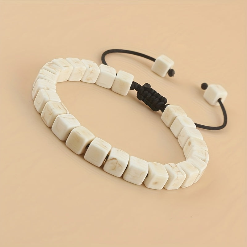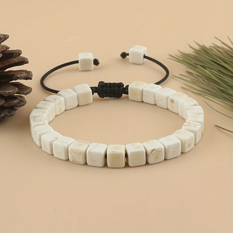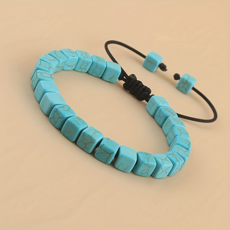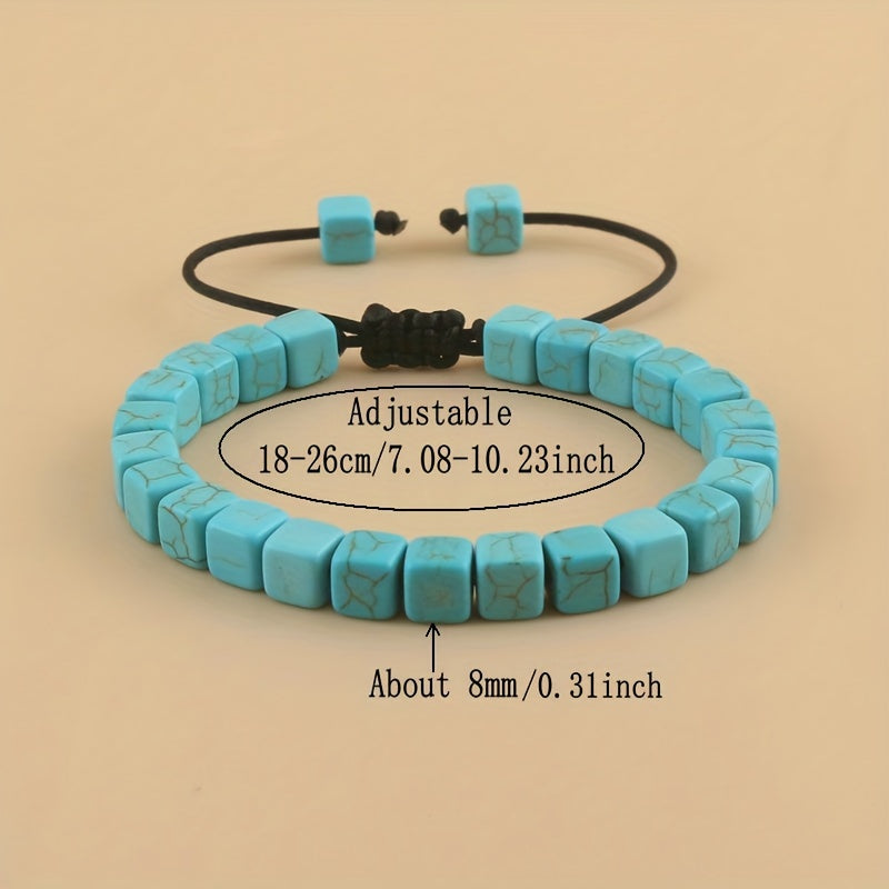 This braided bracelet features square turquoise beads on a stylish cord, making it a perfect friendship gift for men.
