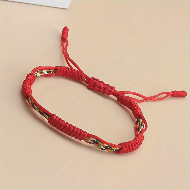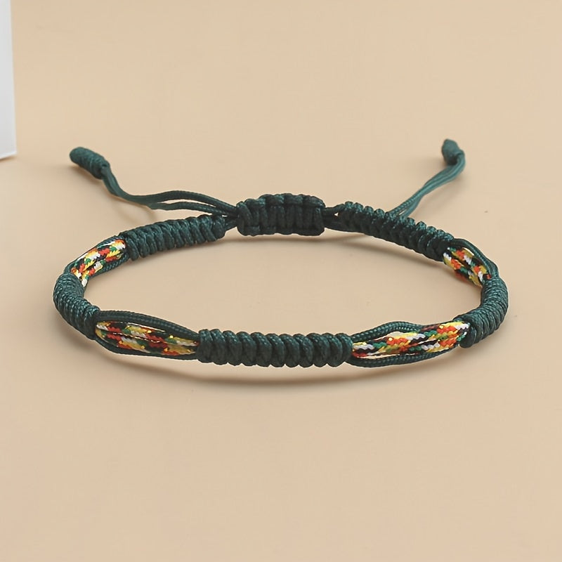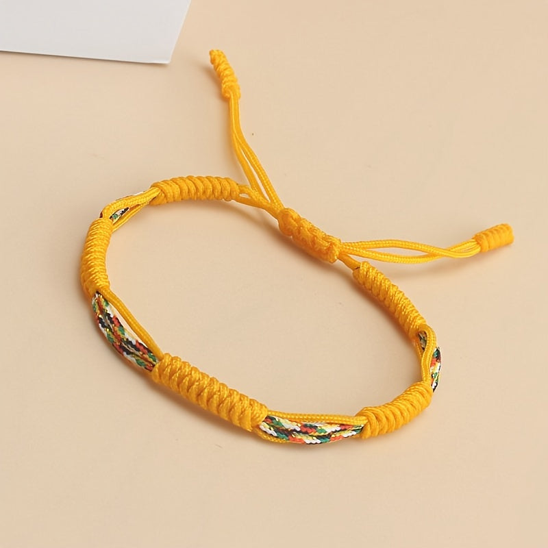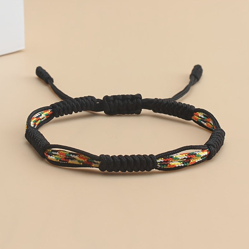 Adjustable Braided Rope Bracelet Colorful Beads Tassels Unisex Couple Gift