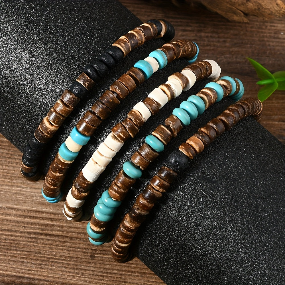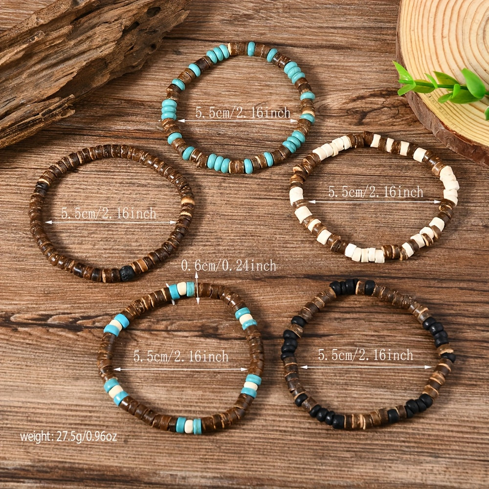 This bracelet set is perfect for men and women who appreciate a tribal and ethnic style. Handmade with adjustable coconut shell beads, it's ideal for yoga practice and daily wear.