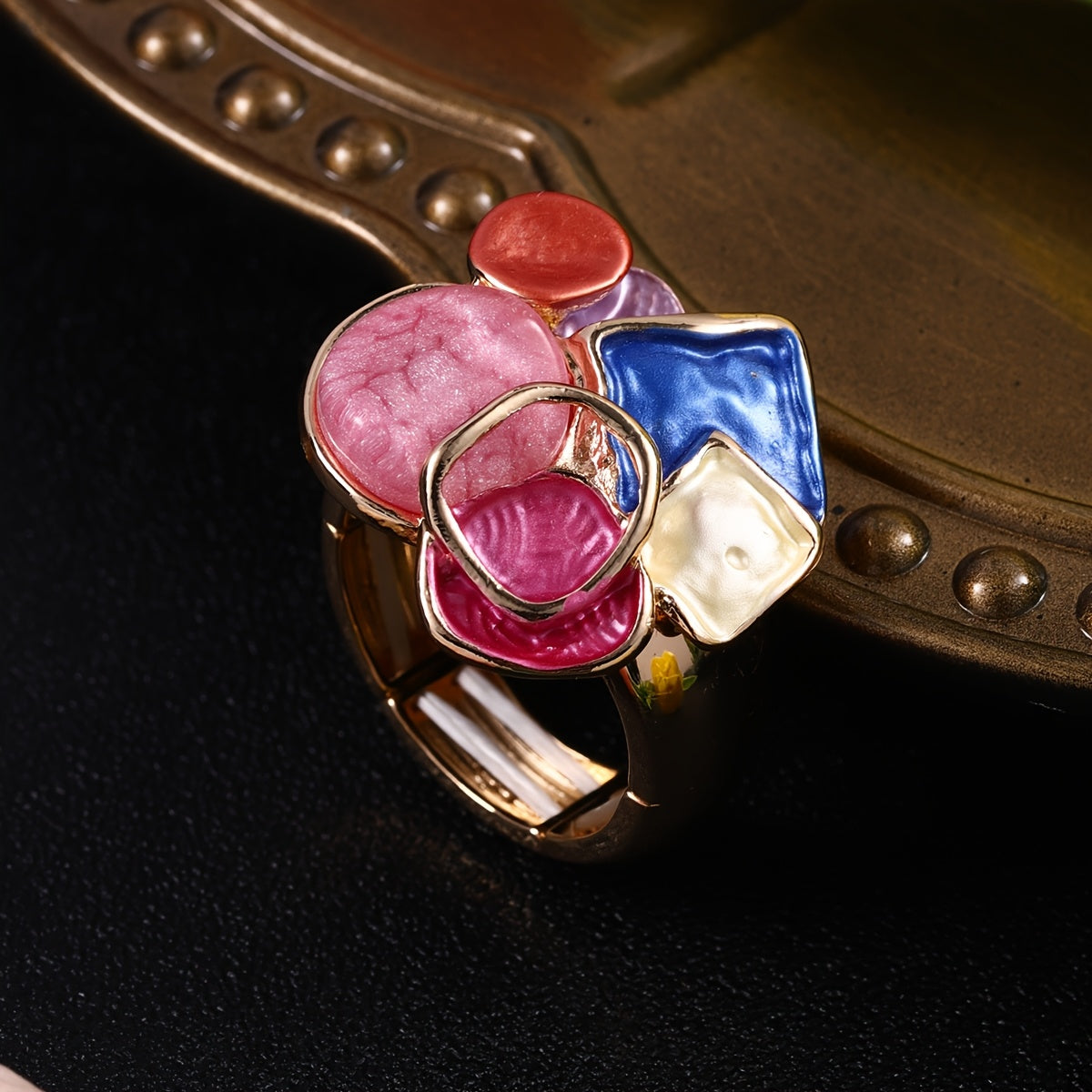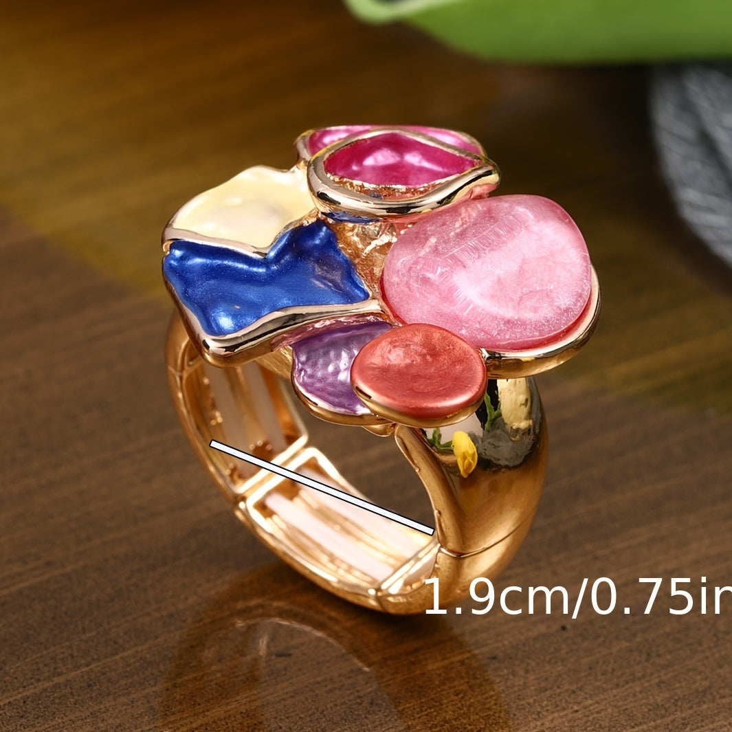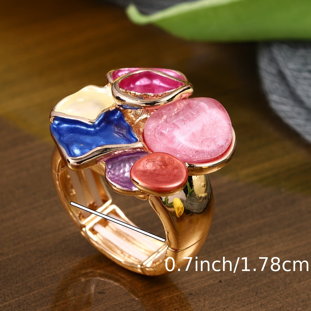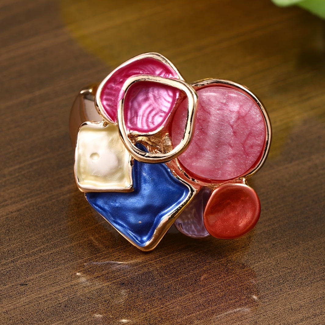 Elegant retro bohemian ring with drop painted enamel design. Perfect for daily wear, parties, and banquets. A unique gift idea for anyone.