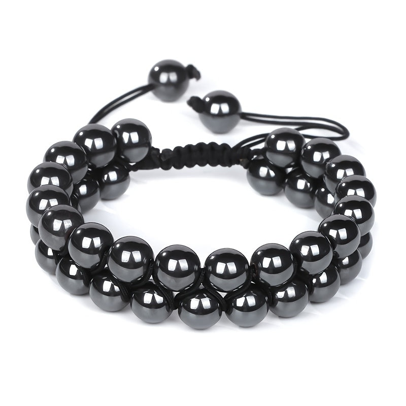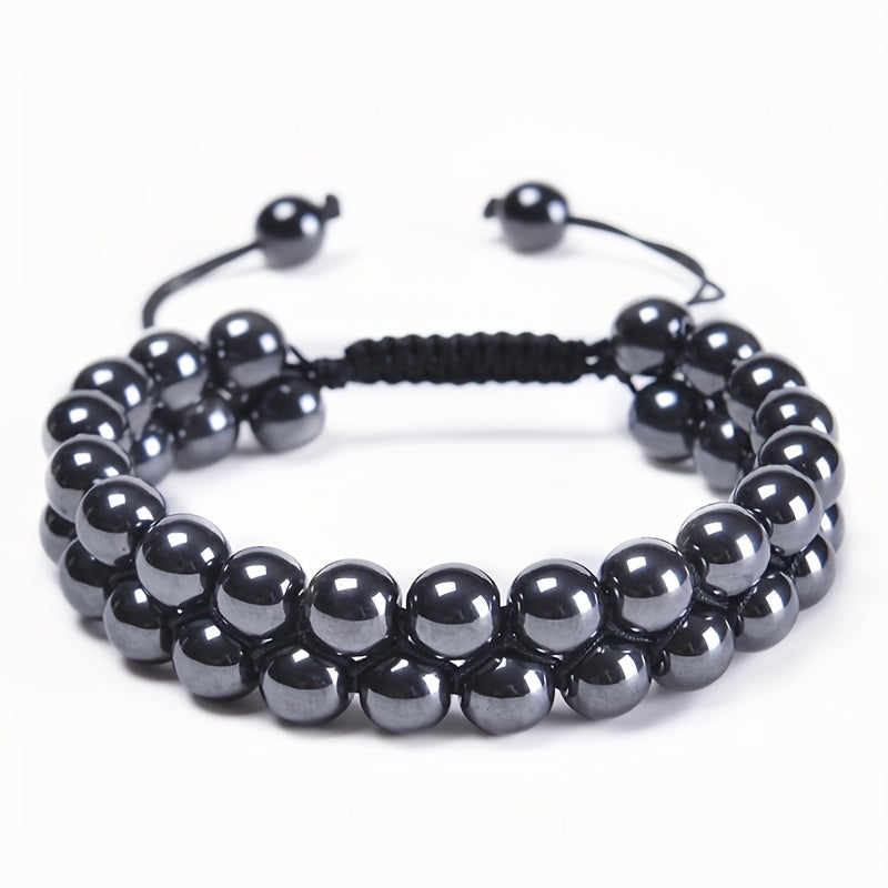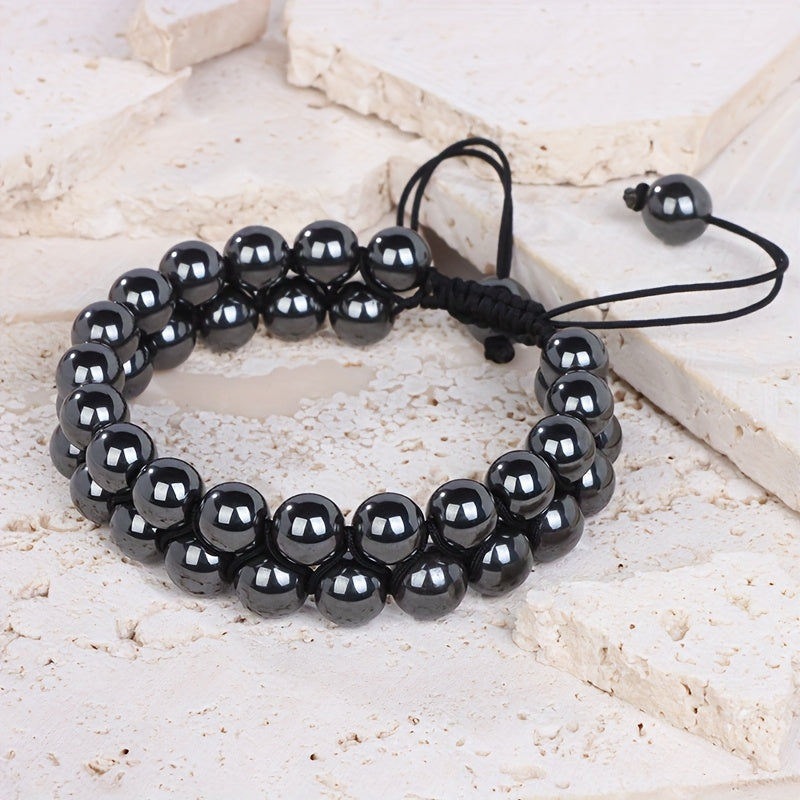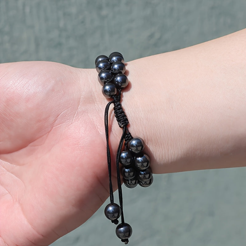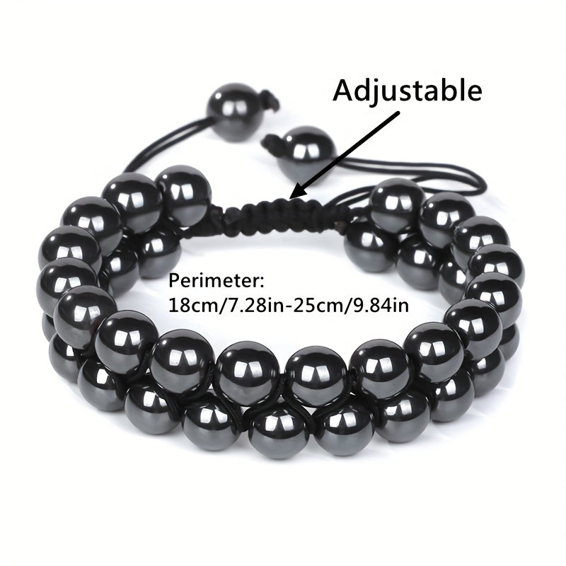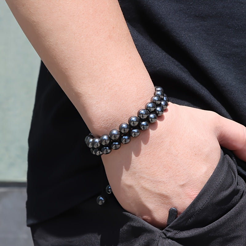 This adjustable beaded bracelet features synthetic stone beads with a June birthstone design. It is suitable for men and women and makes a great Father's Day gift. Perfect for year-round wear.