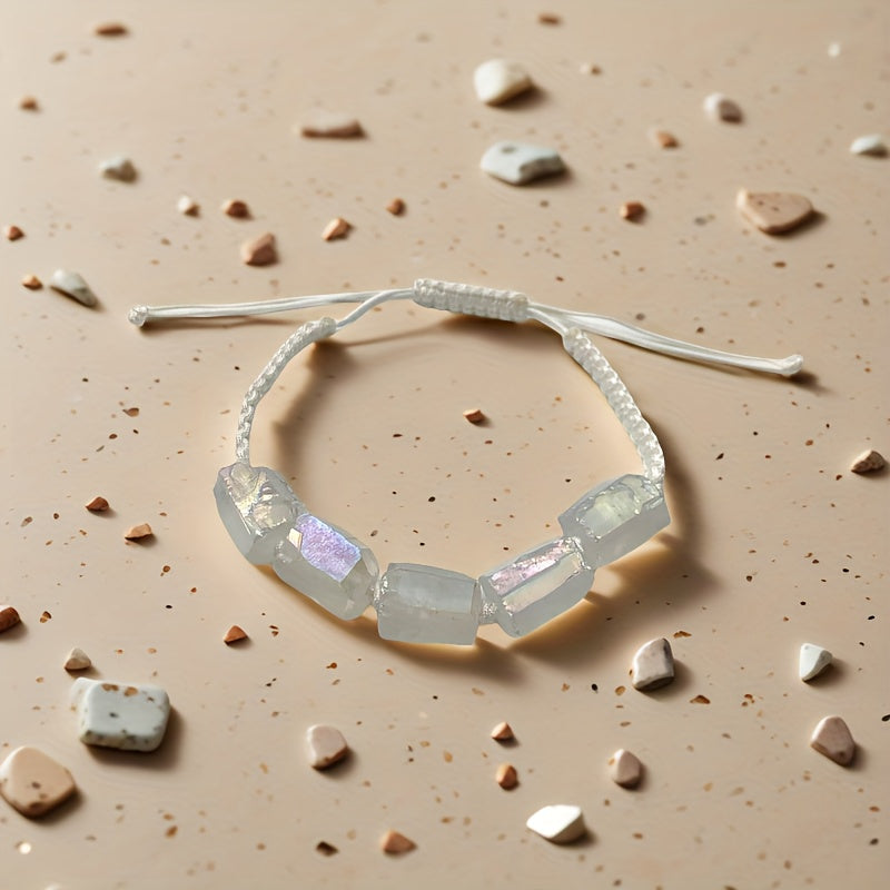 Elevate your style with this adjustable beaded bracelet made of natural stones. The faux gemstones add a touch of sparkle and can be worn by both men and women as a fashionable accessory.