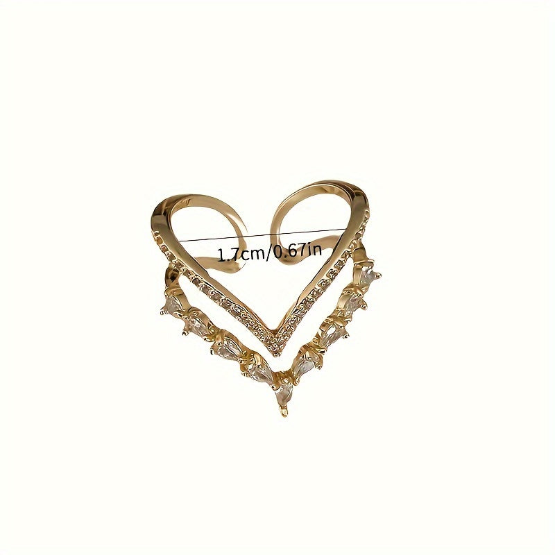 This double V-shaped ring is crafted with a copper base and features zirconia stone accents. It offers an adjustable fit for comfortable wear every day.