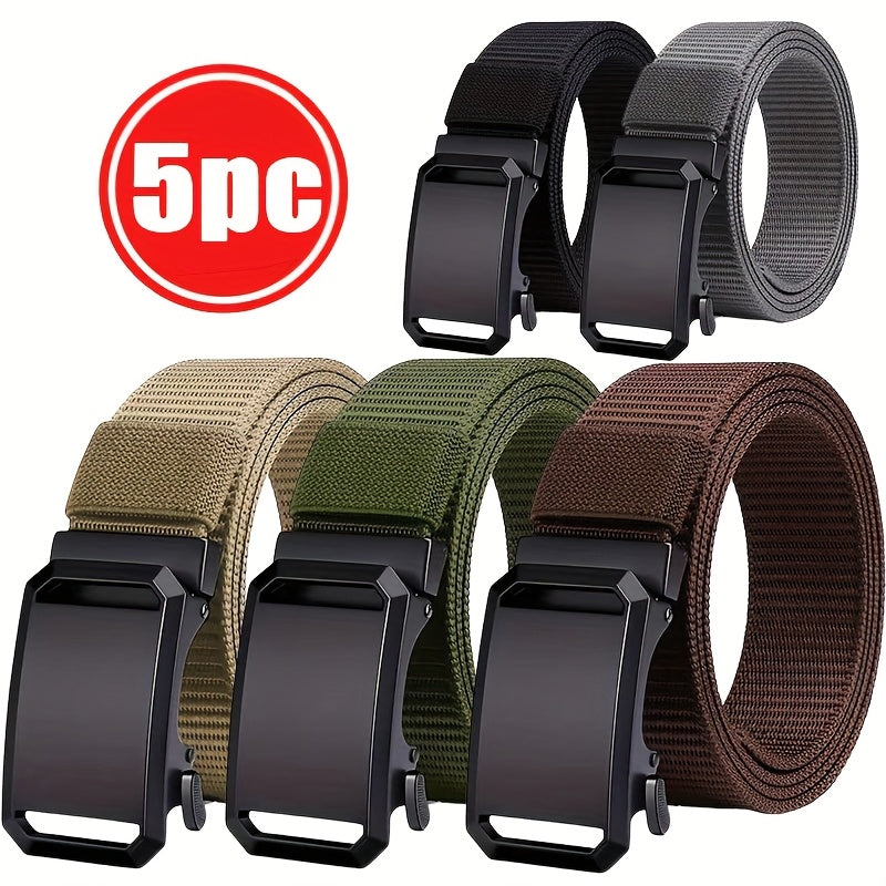 Upgrade your belt game with this set of 5 alloy canvas belts designed for young and middle-aged men. Perfect for business casual wear or student training.