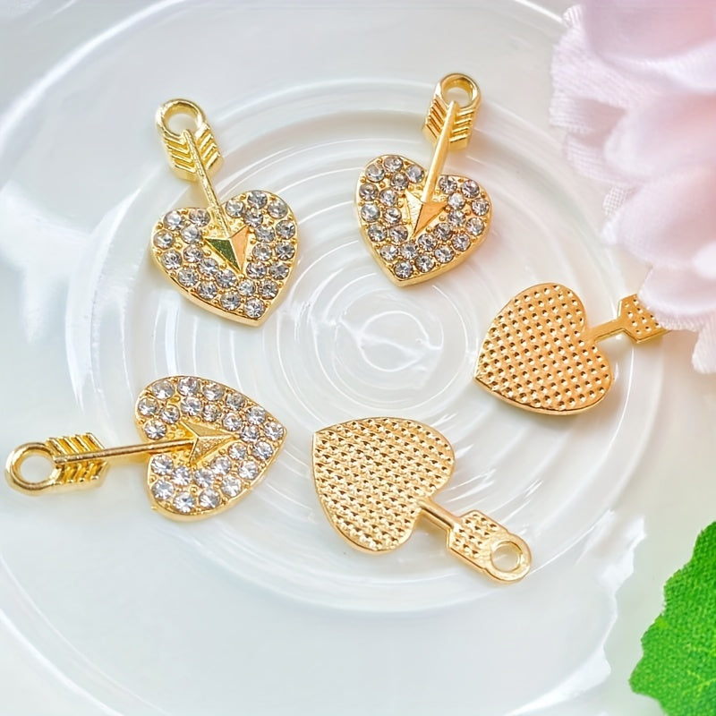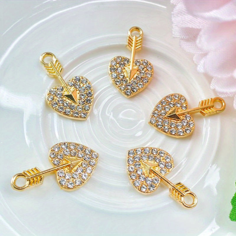 This set includes a necklace, bracelet, earrings, and pendant featuring a beautiful design of an arrow through a heart, adorned with diamonds.