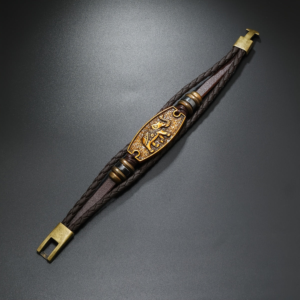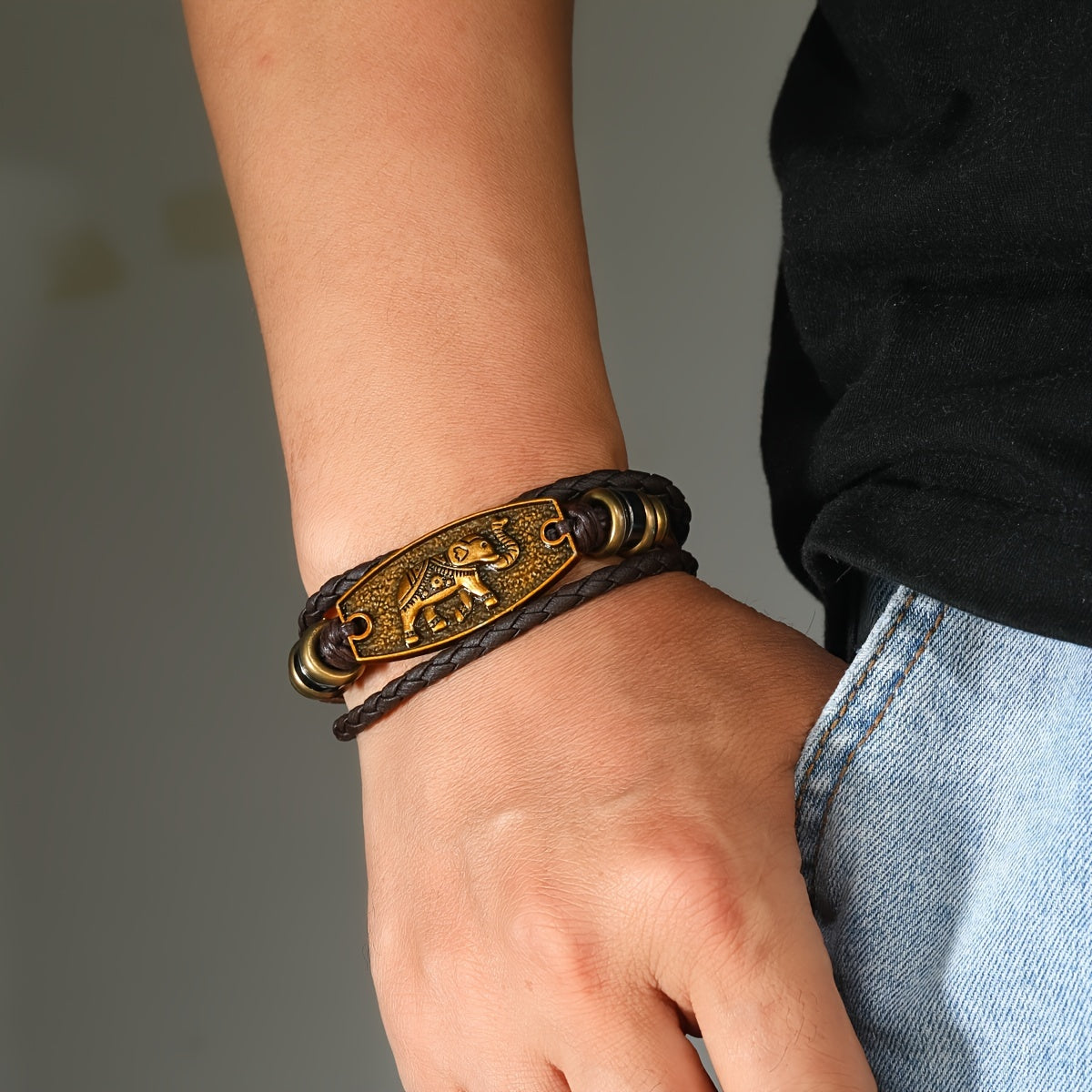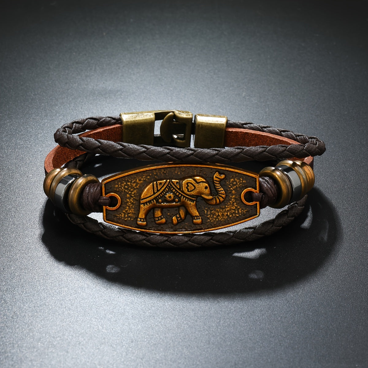 Add a touch of unique style to your outfit with this elephant beaded PU leather bracelet. The intricate woven design and alloy elephant charm make it a great accessory for men.