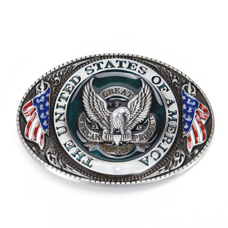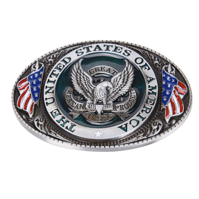 Alloy & Flag Belt Buckle Men Western Style Fits 3 Belts High Metal Intricate