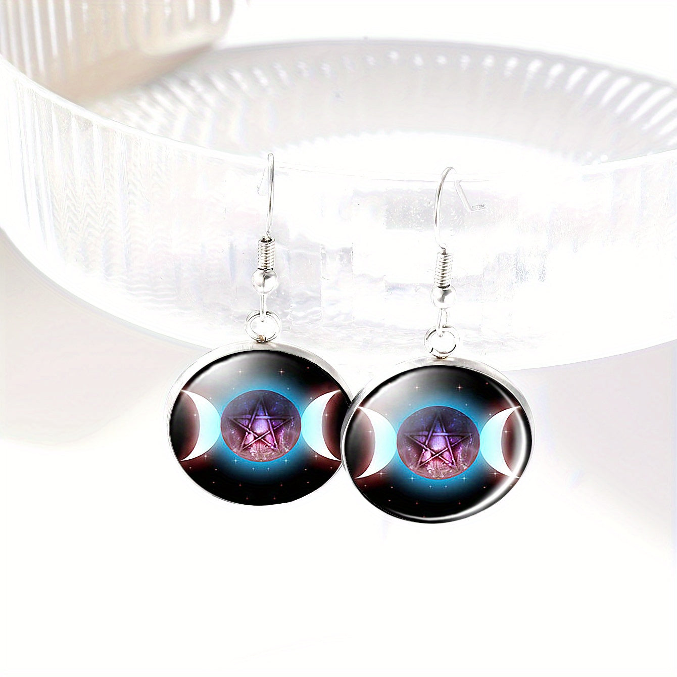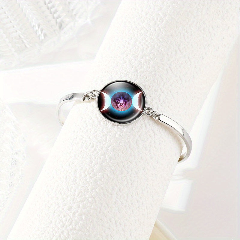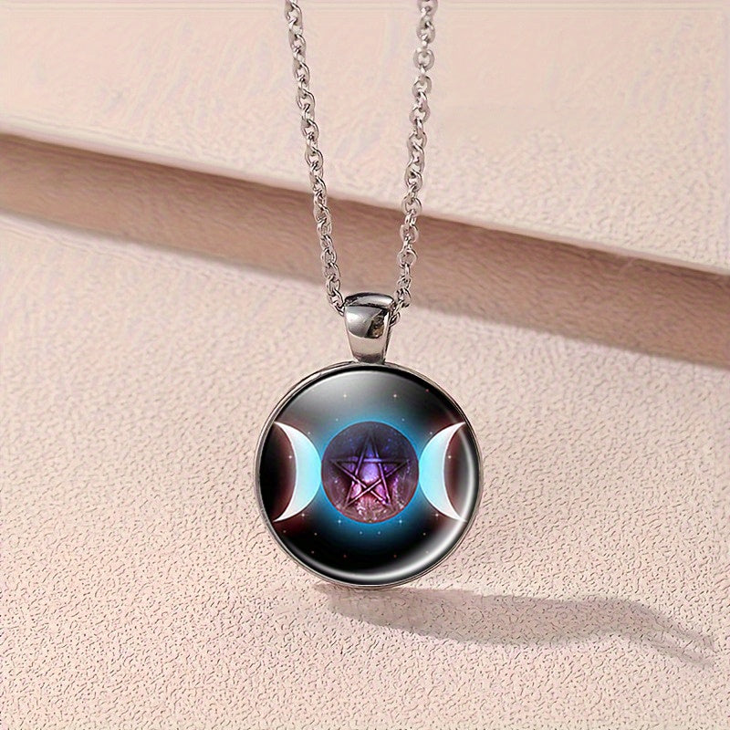 This stunning alloy jewelry set features a Triple Moon Pentagram pendant necklace, bracelet, and a pair of earrings. Ideal for those who appreciate mystical and symbolic jewelry.