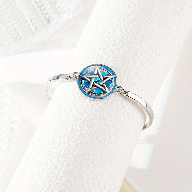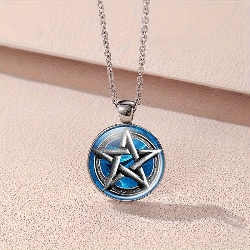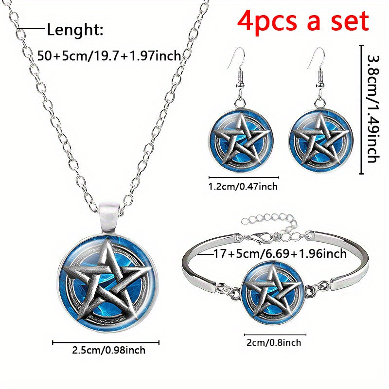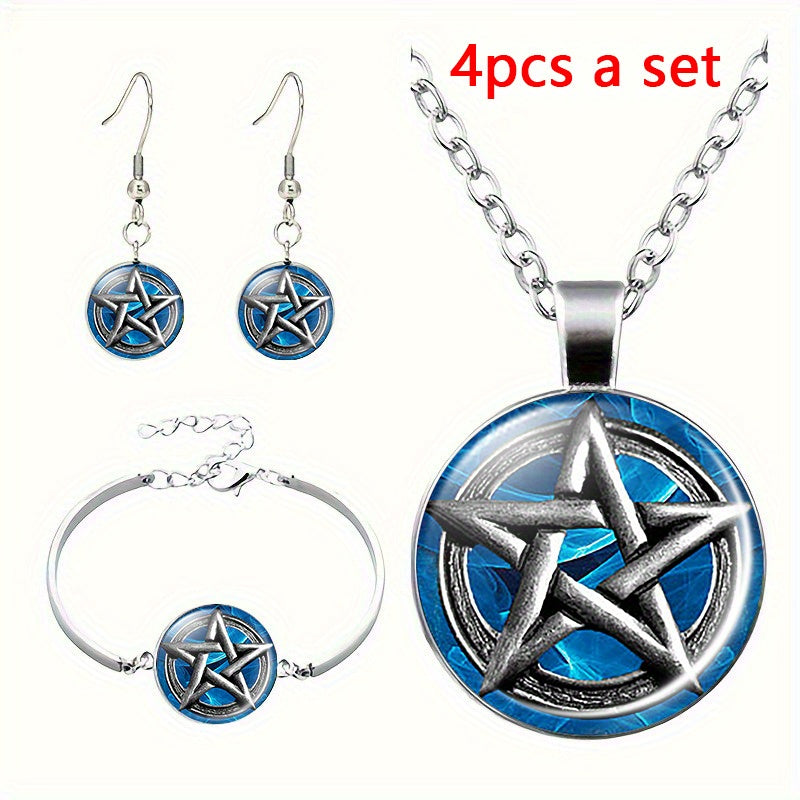 This 4-piece alloy jewelry set includes a pentagram pendant necklace, bracelet, and a pair of earrings, perfect for adding a touch of mystique to your look.