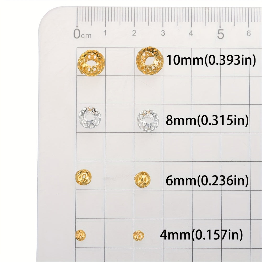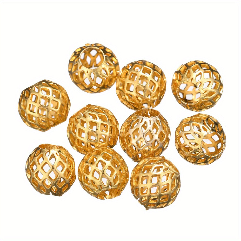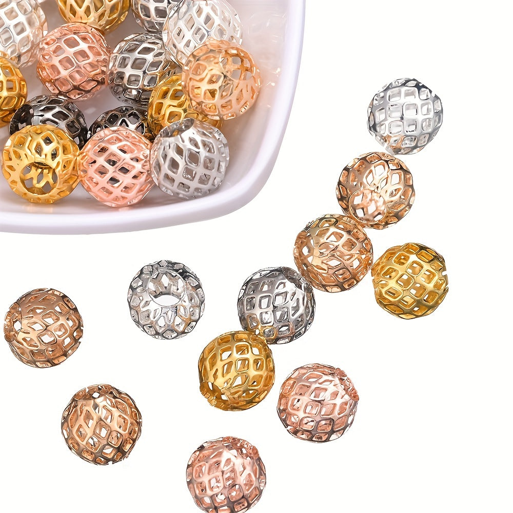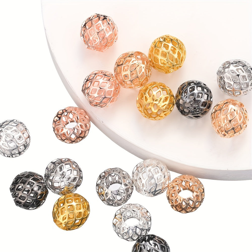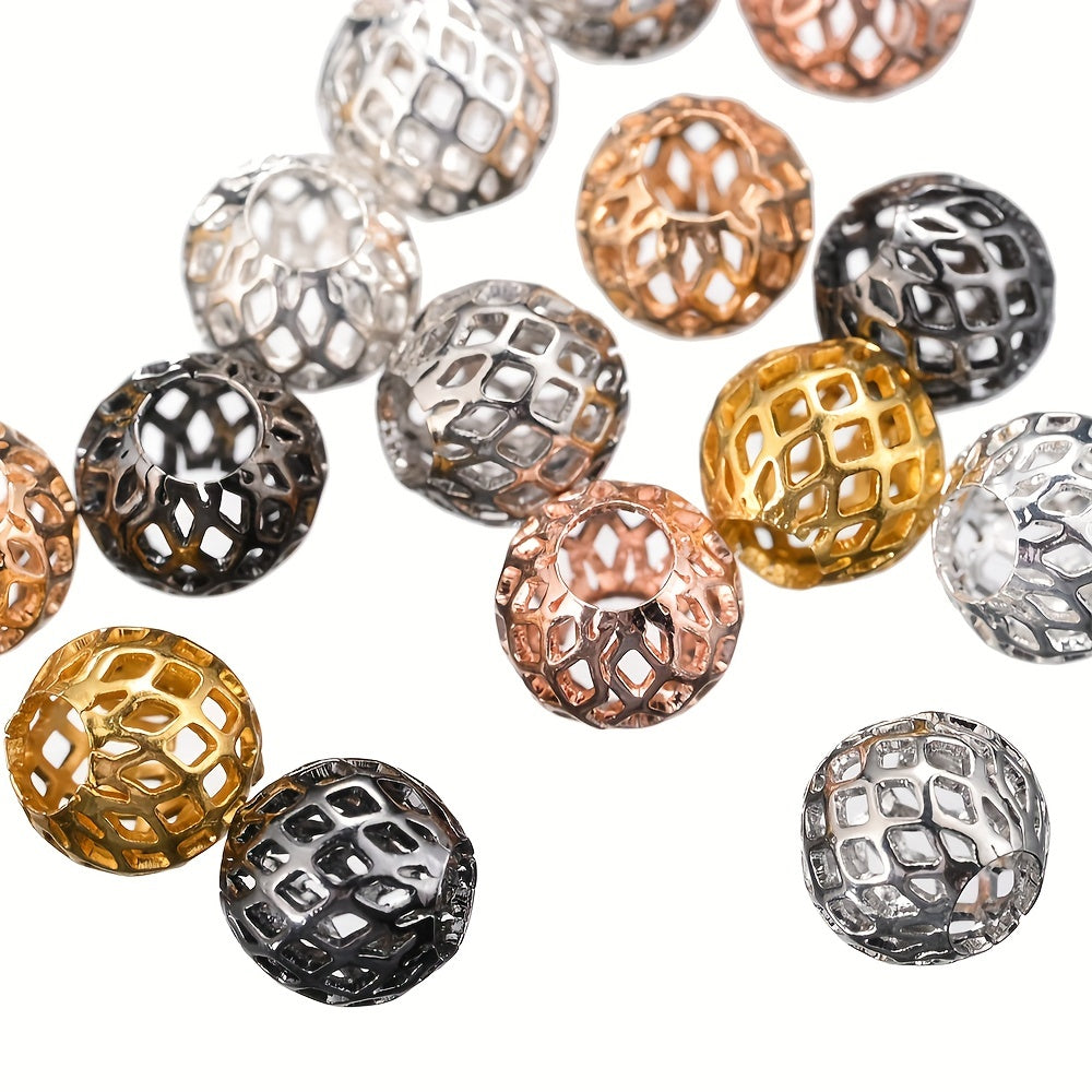 Enhance your jewelry making with these metal spacer beads featuring a hollow out round design suitable for bracelets and necklaces. Perfect for DIY projects.