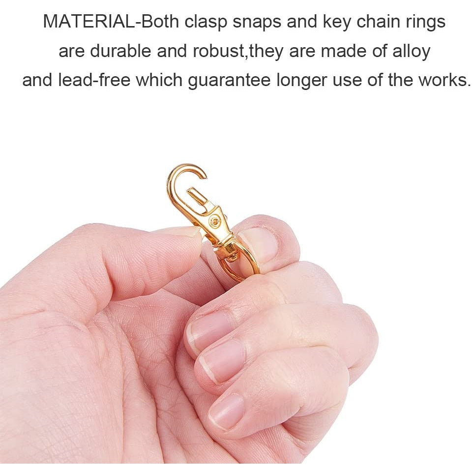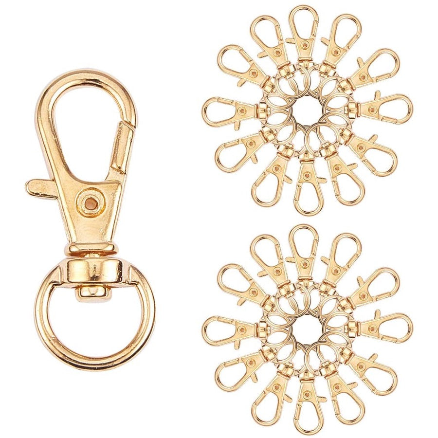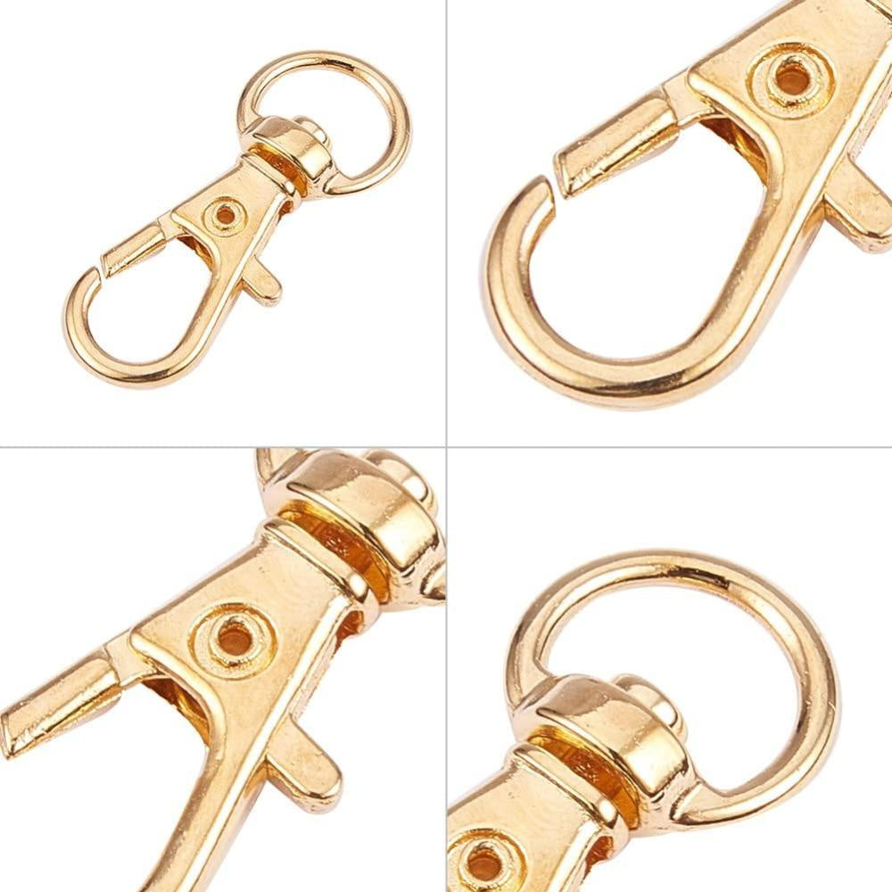Get 100pcs of swivel lobster claw clasps for keychain and pendant making. Made of alloy in a golden finish. Each clasp measures 32.5x11x6mm with a hole size of 9x5mm.