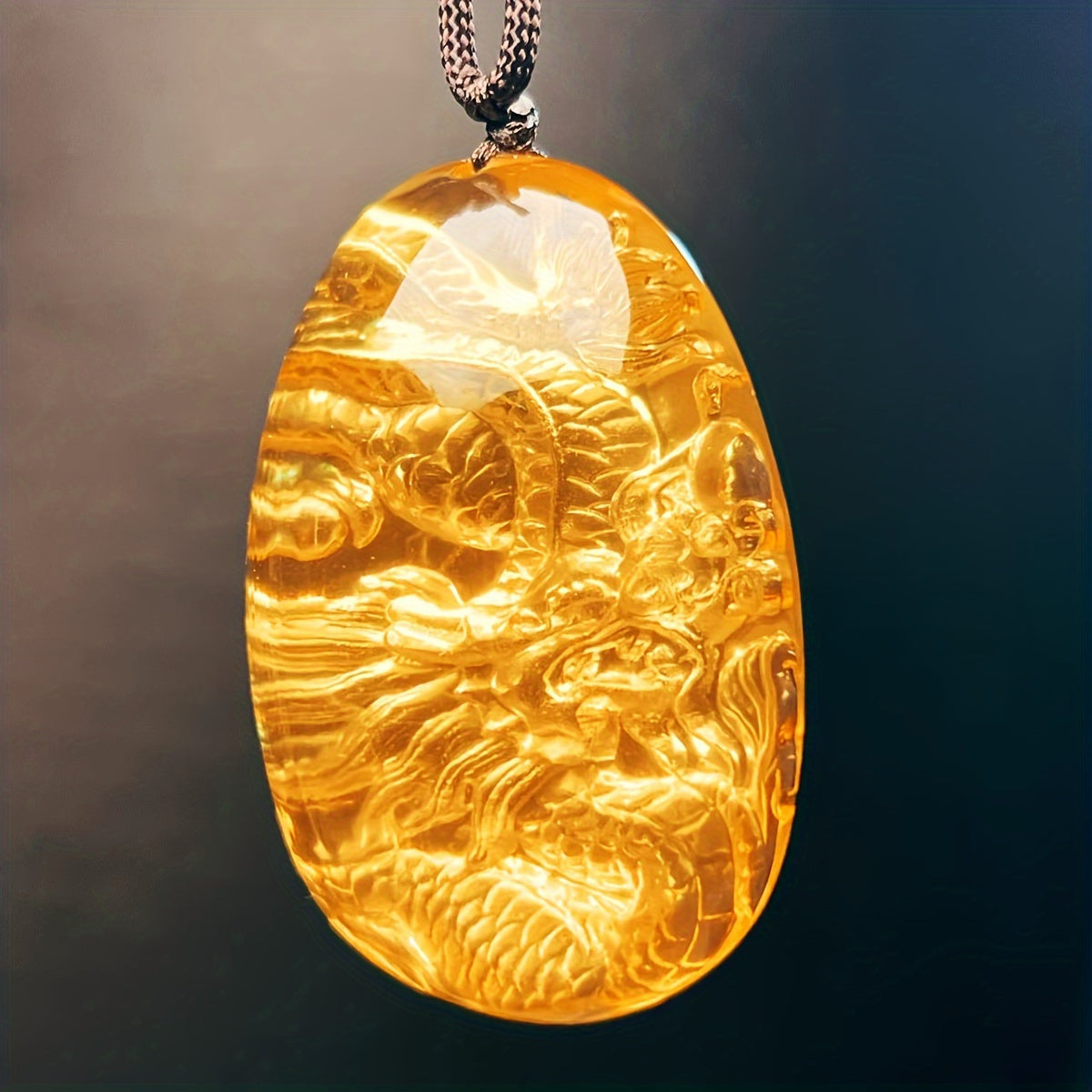 Impress with this handsome amber dragon pendant necklace, made of natural amber without plating. It is a protective lucky charm that adds style to your look.