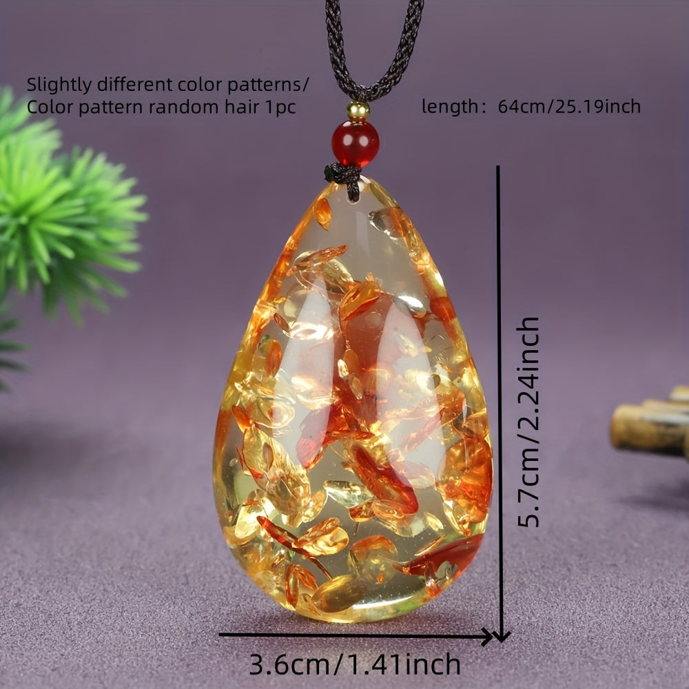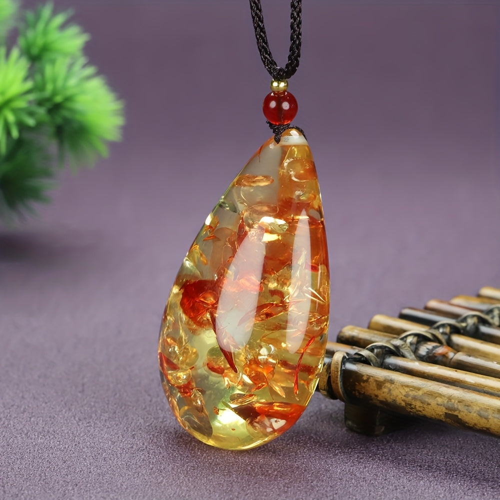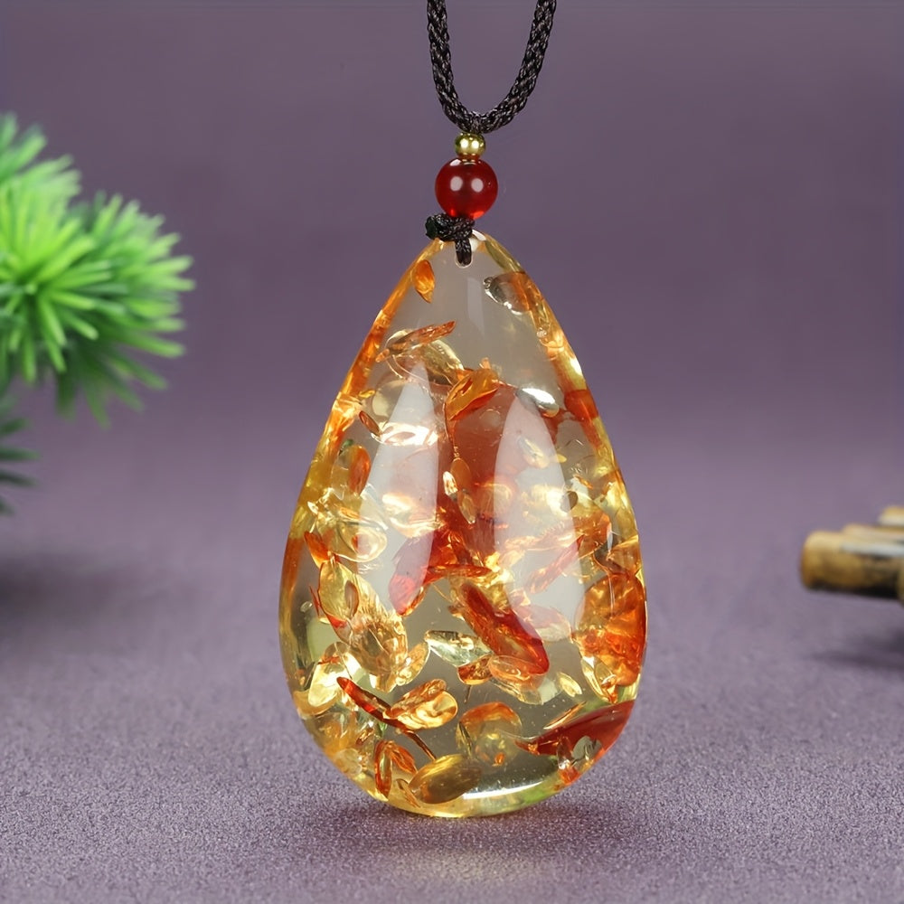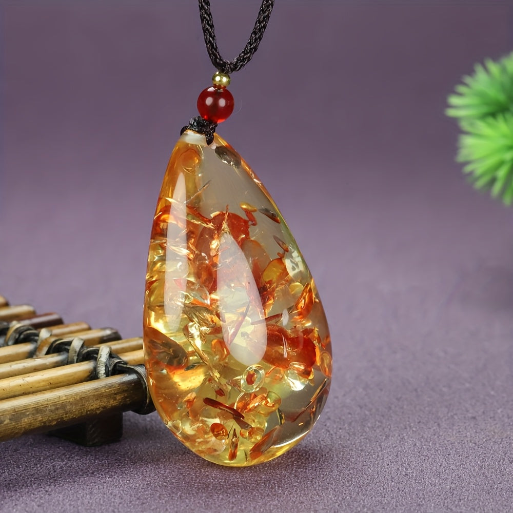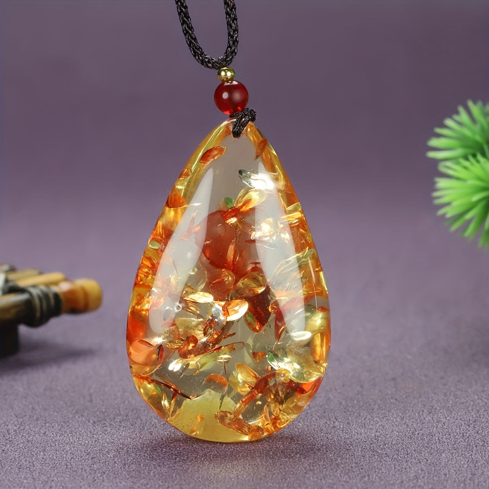 Amber Resin Pendant Necklace Teardrop Daily Wear Birthday Accessory