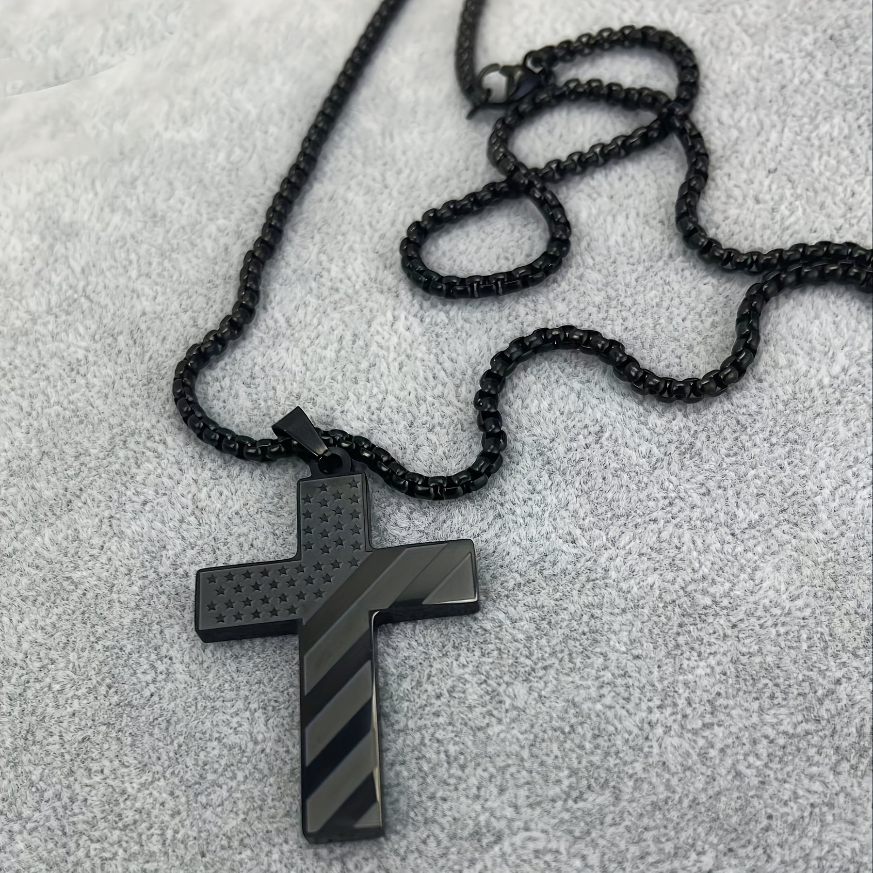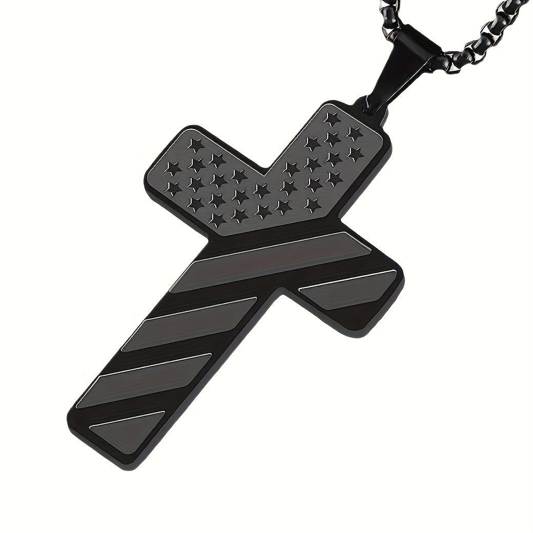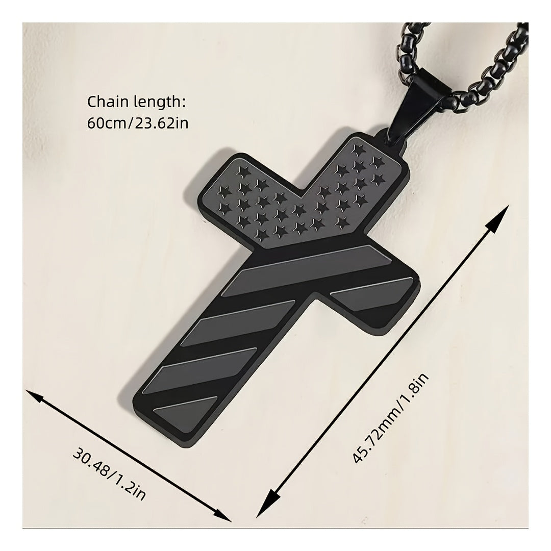 American Flag Cross Pendant Necklace Men's Stainless Steel Necklace
