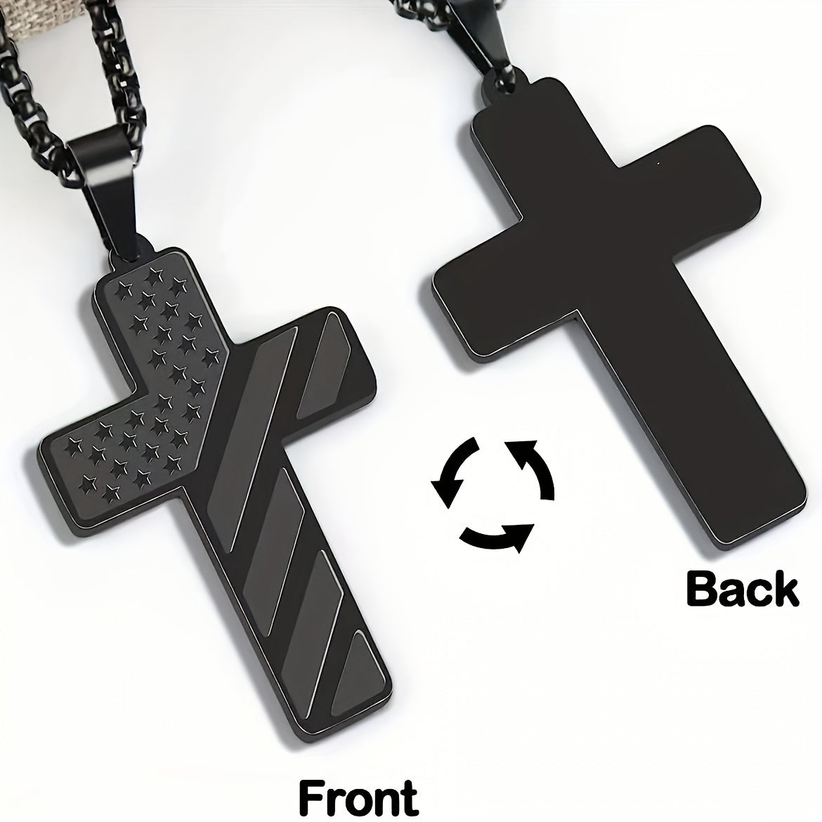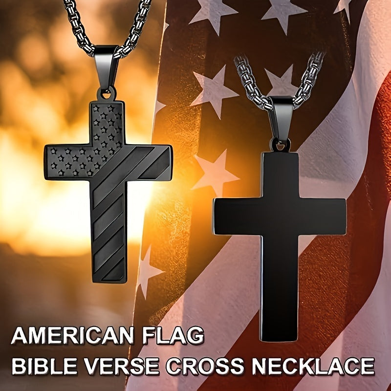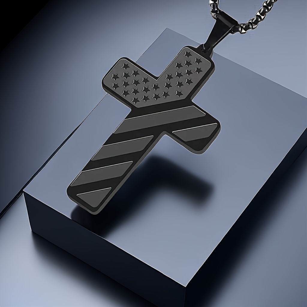 American Flag Cross Pendant Necklace Men's Stainless Steel Necklace