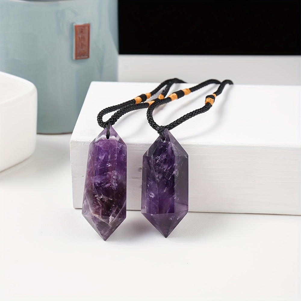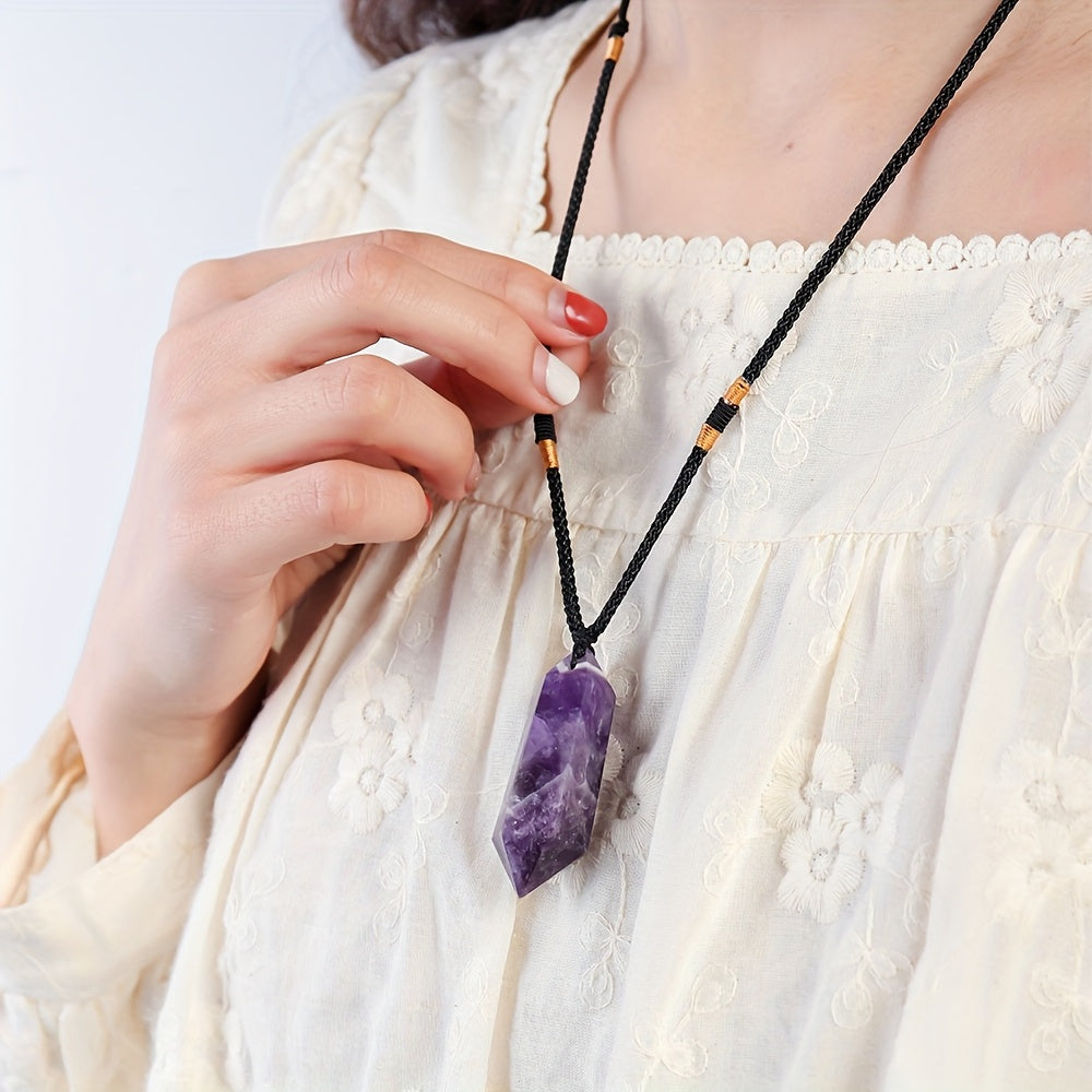 This stylish pendant necklace features an artificial crystal in a geometric design. It is a perfect holiday gift for both men and women.