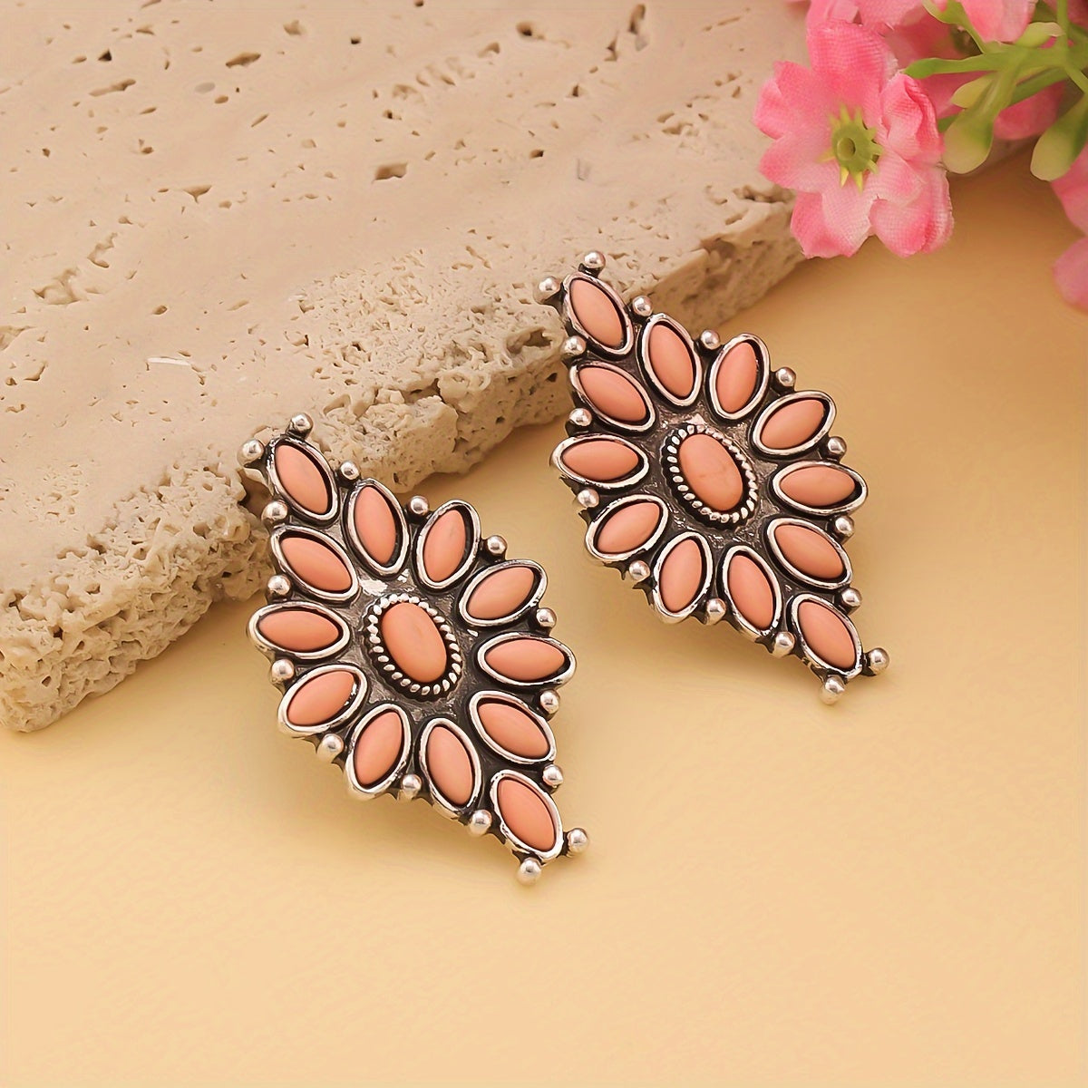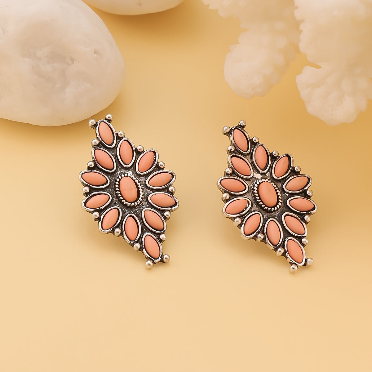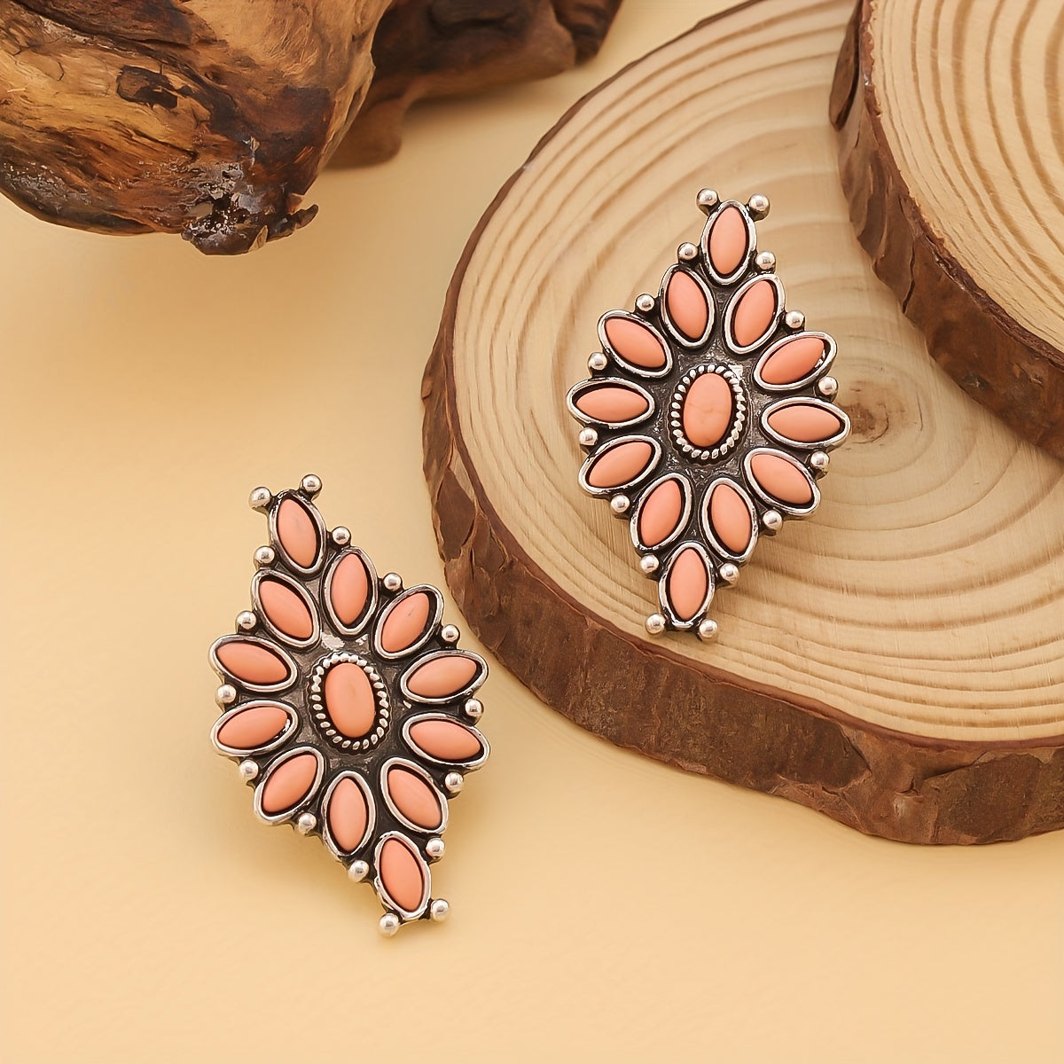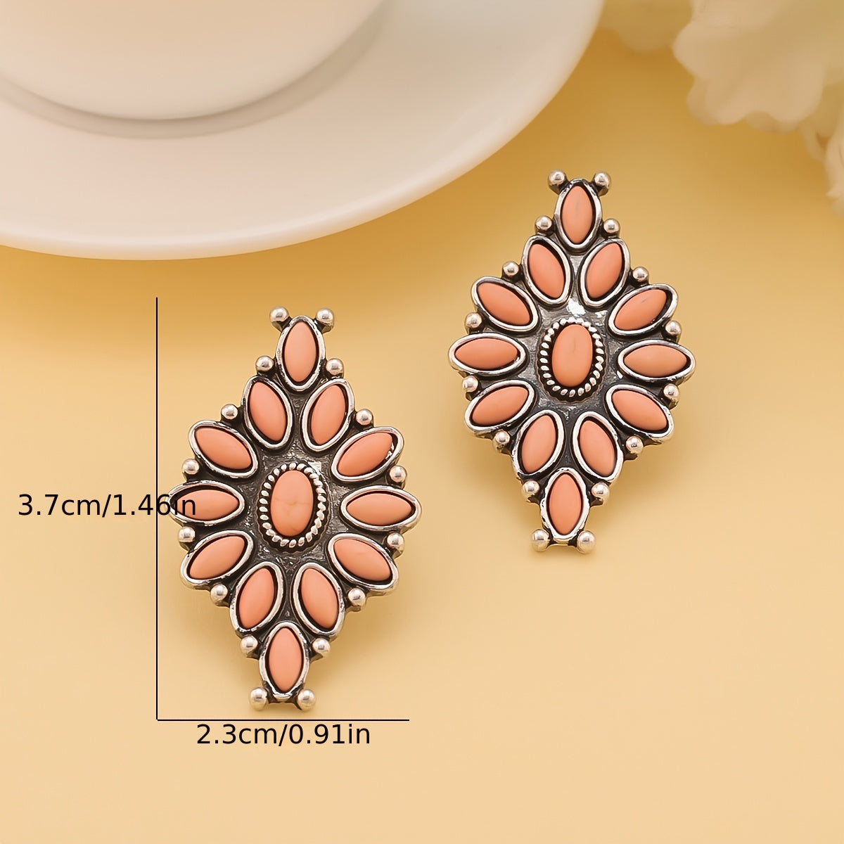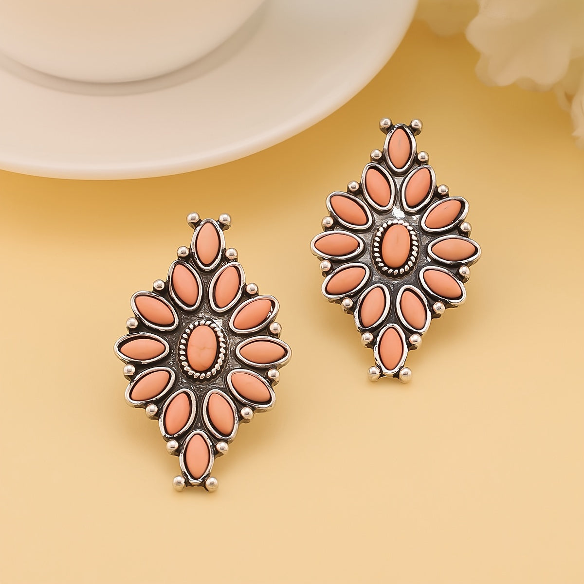 These stunning stud earrings feature a beautiful turquoise inlay set in an ancient silvery design. Perfect for adding a touch of elegance to any outfit.