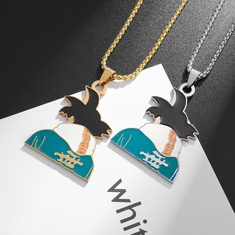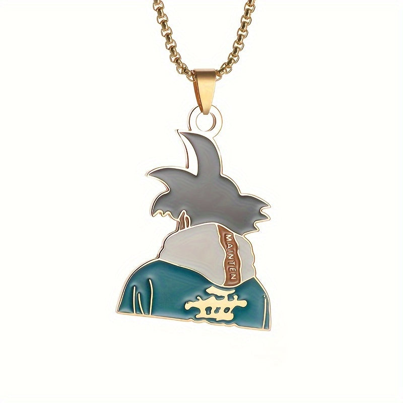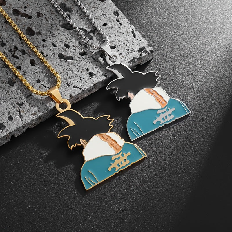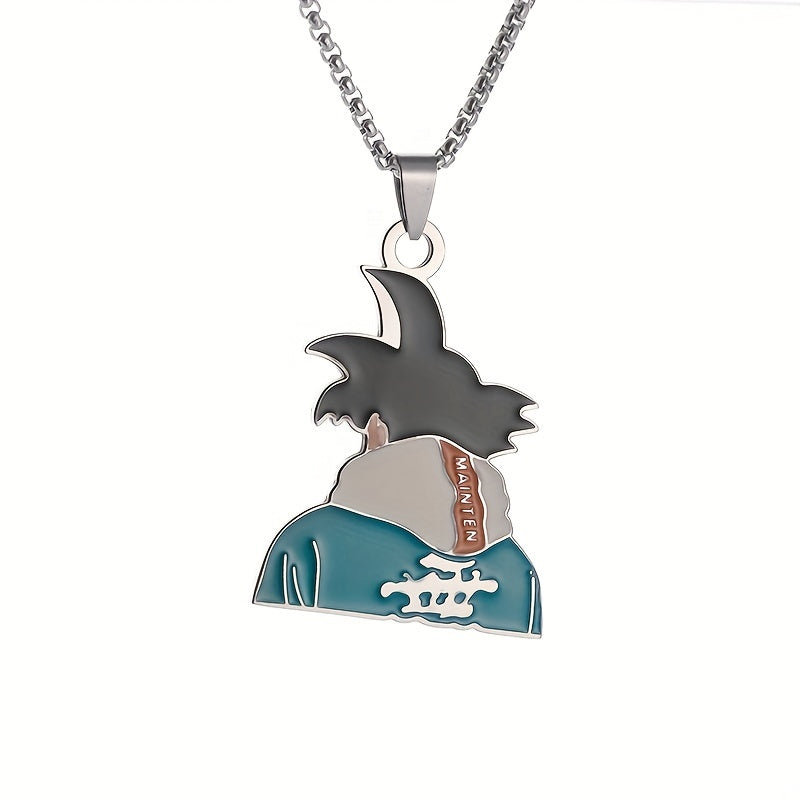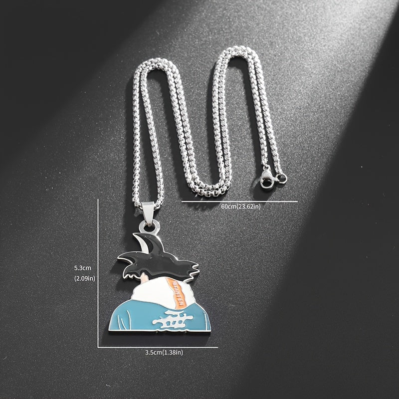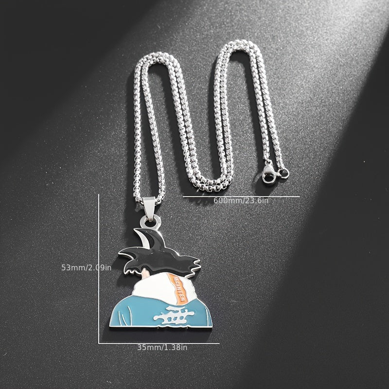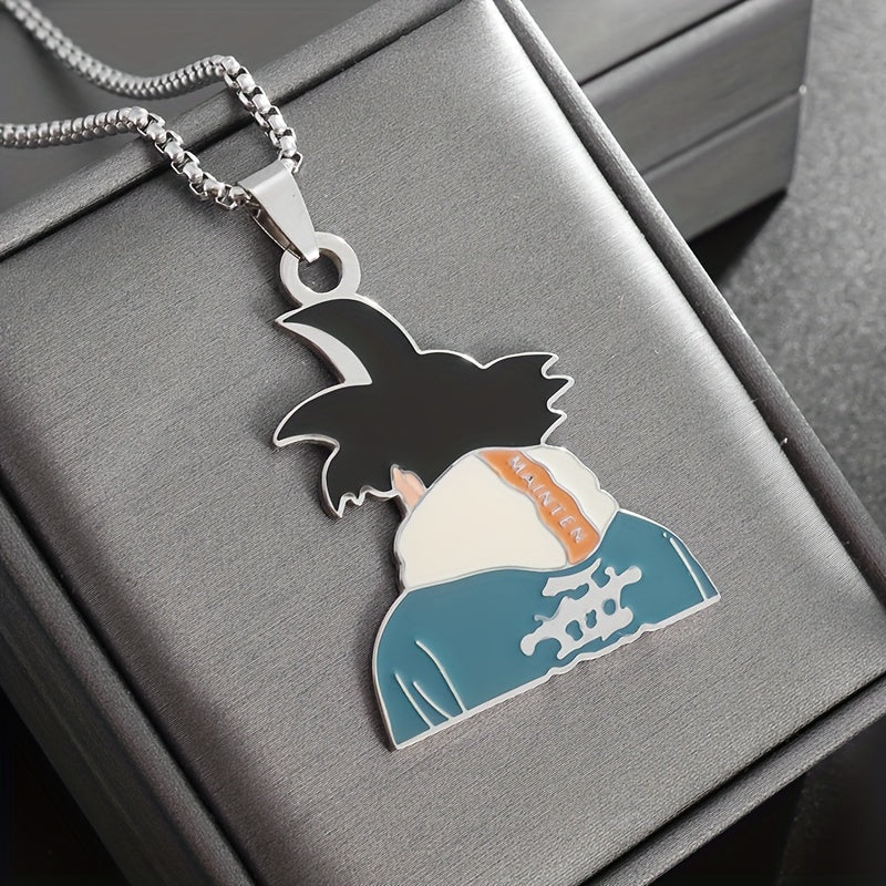 This stainless steel pendant necklace features a unique anime cartoon character design with teal and orange accents. Perfect for men and women, ideal for birthdays or parties.