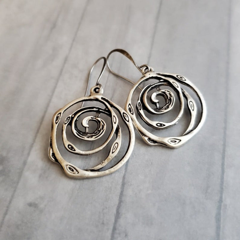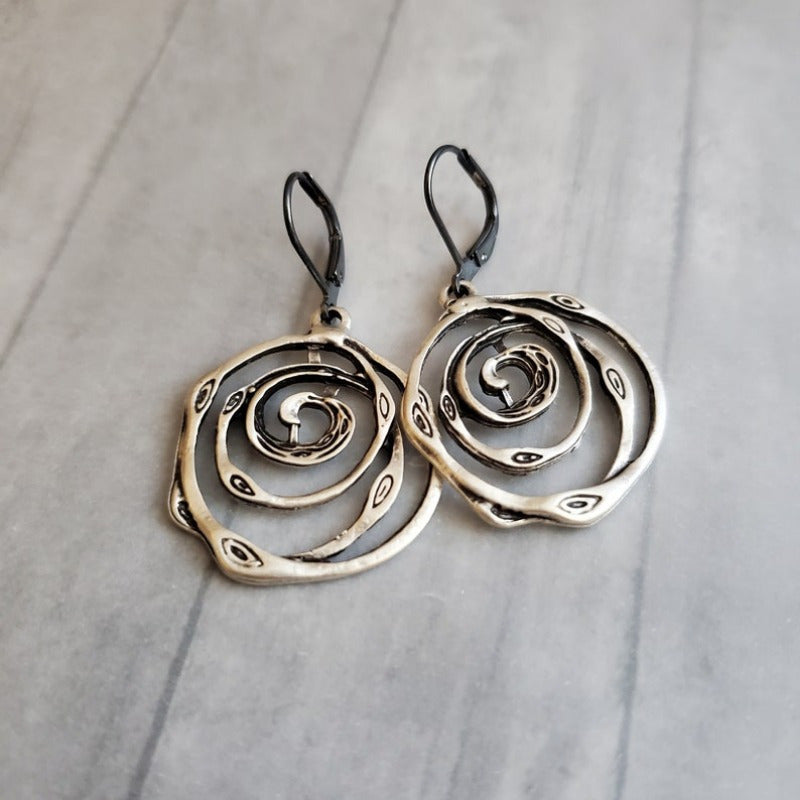 Antique Swirl Hoop Earrings Vintage Inspired Dangle Earrings