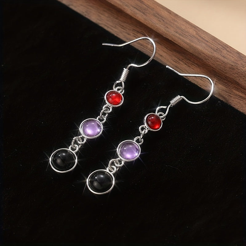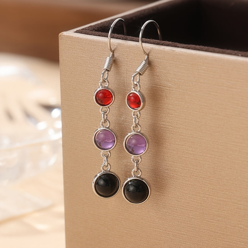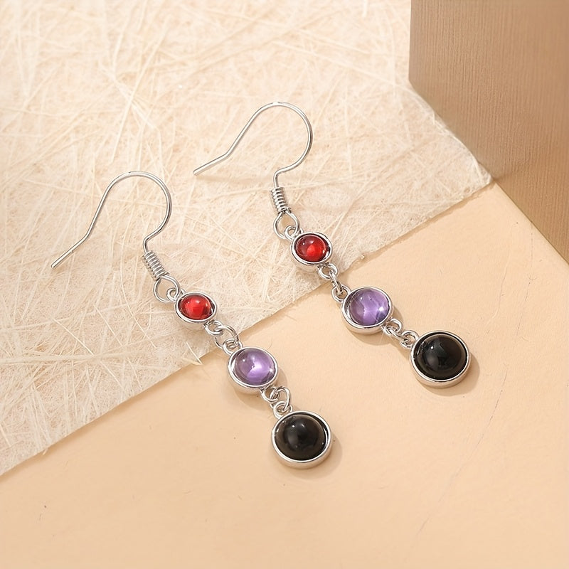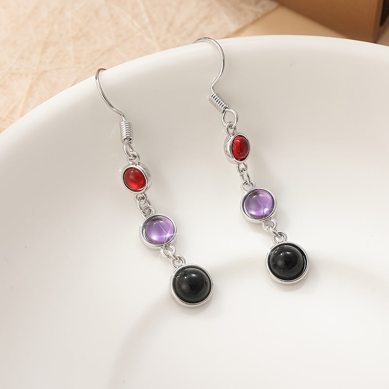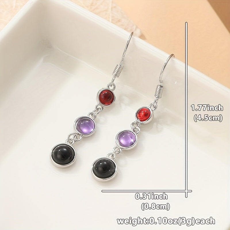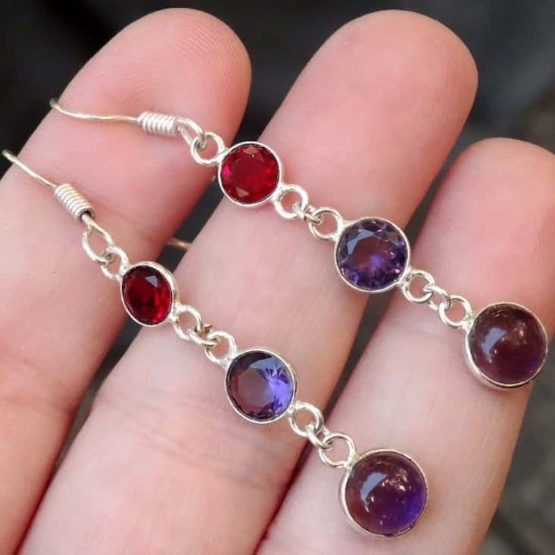 Elegant and stylish jewelry set featuring artificial amethyst and red garnet stones in long water droplet design. Perfect accessory for ladies.