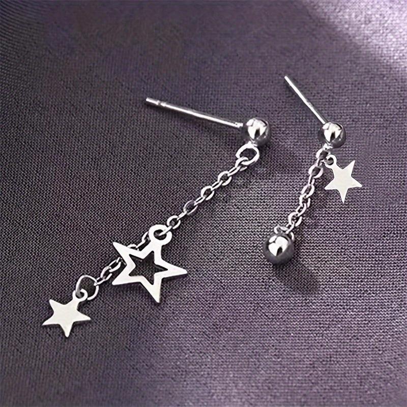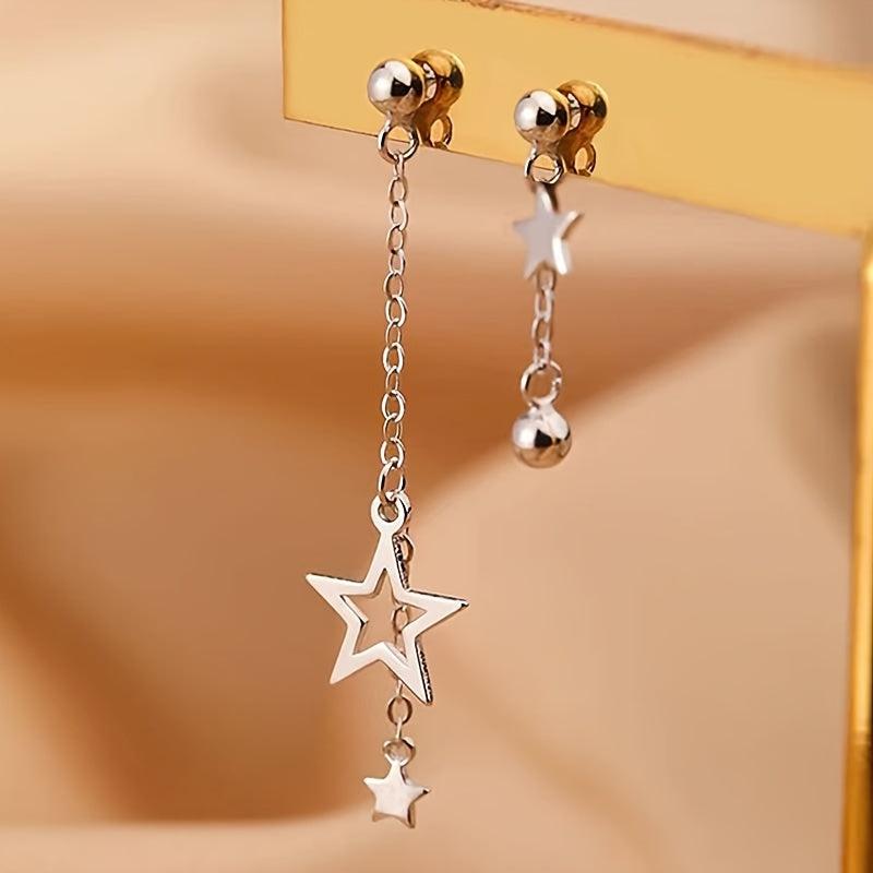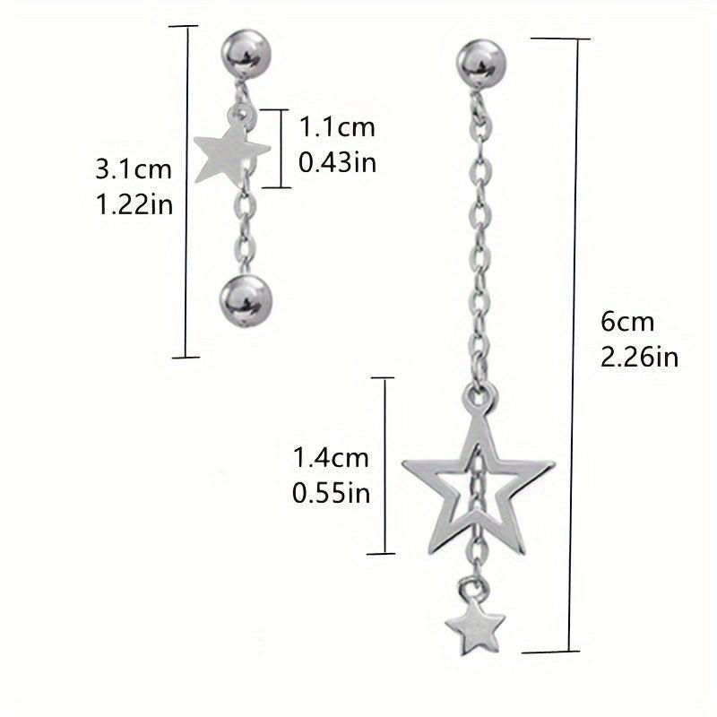 Add a touch of elegance with these long asymmetrical star stud earrings that complement any outfit. Perfect for a versatile and chic look.