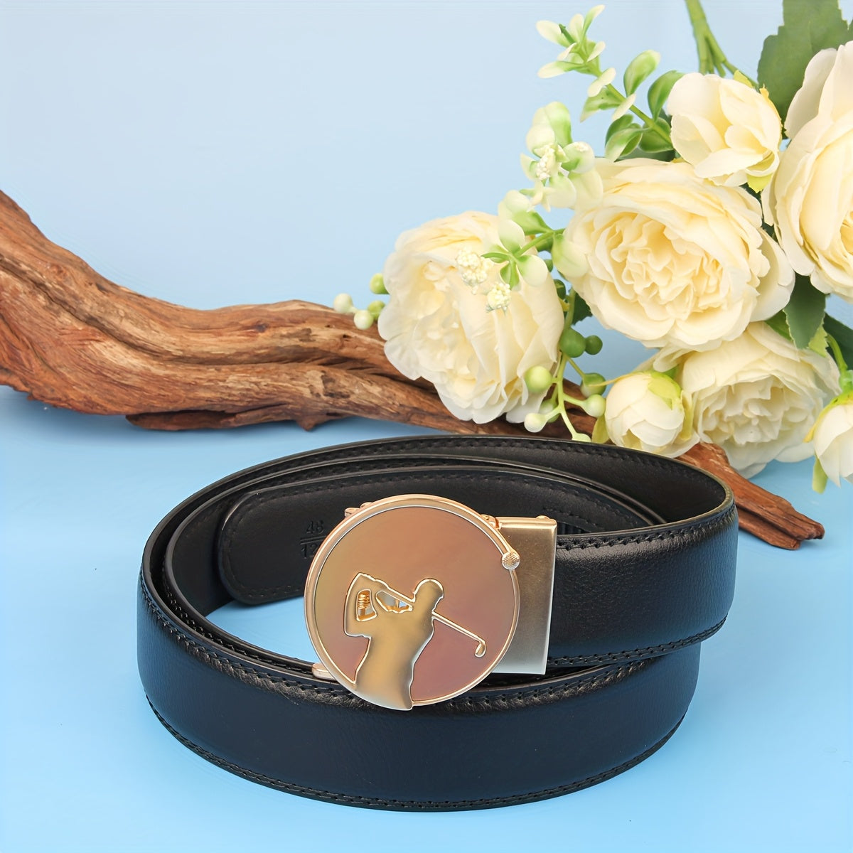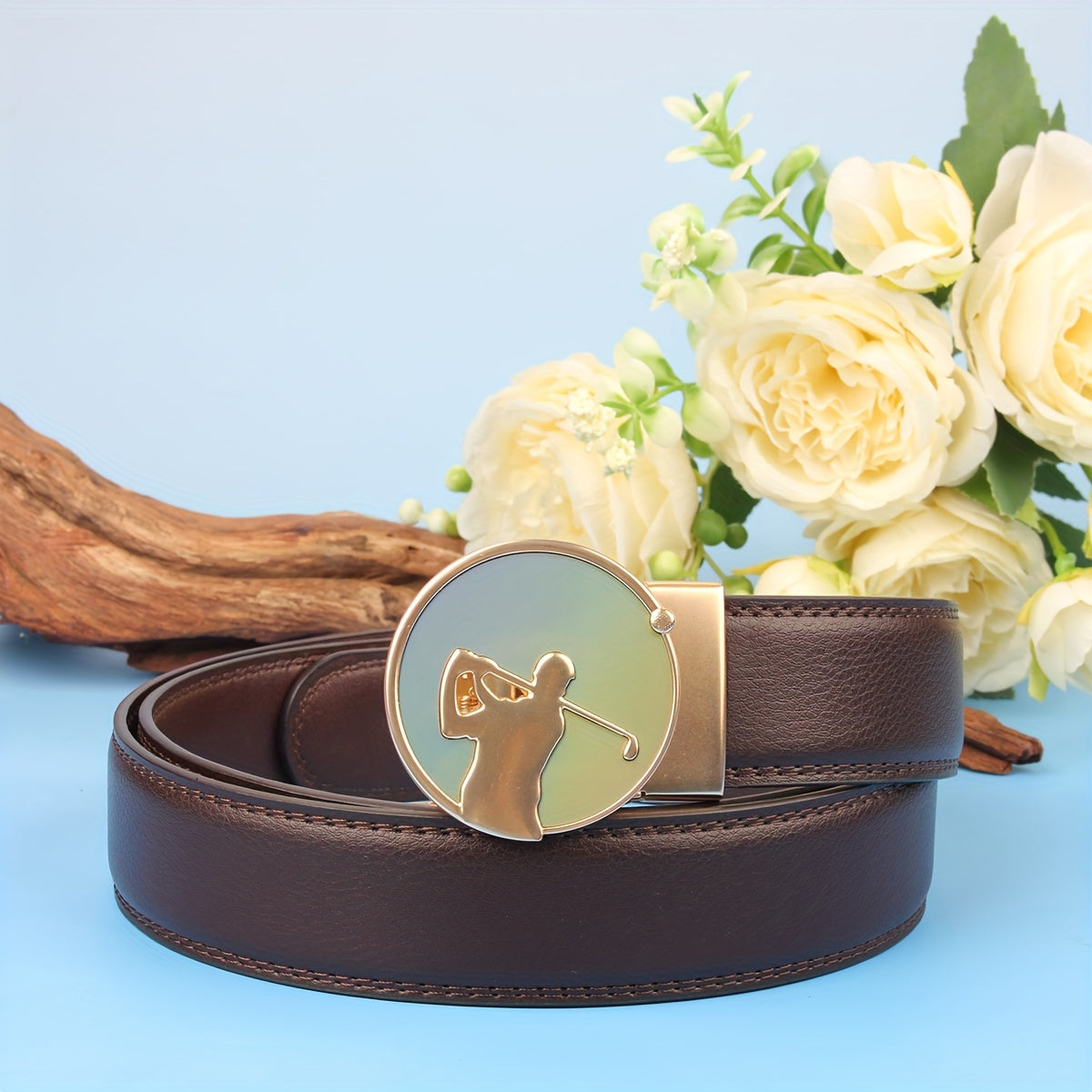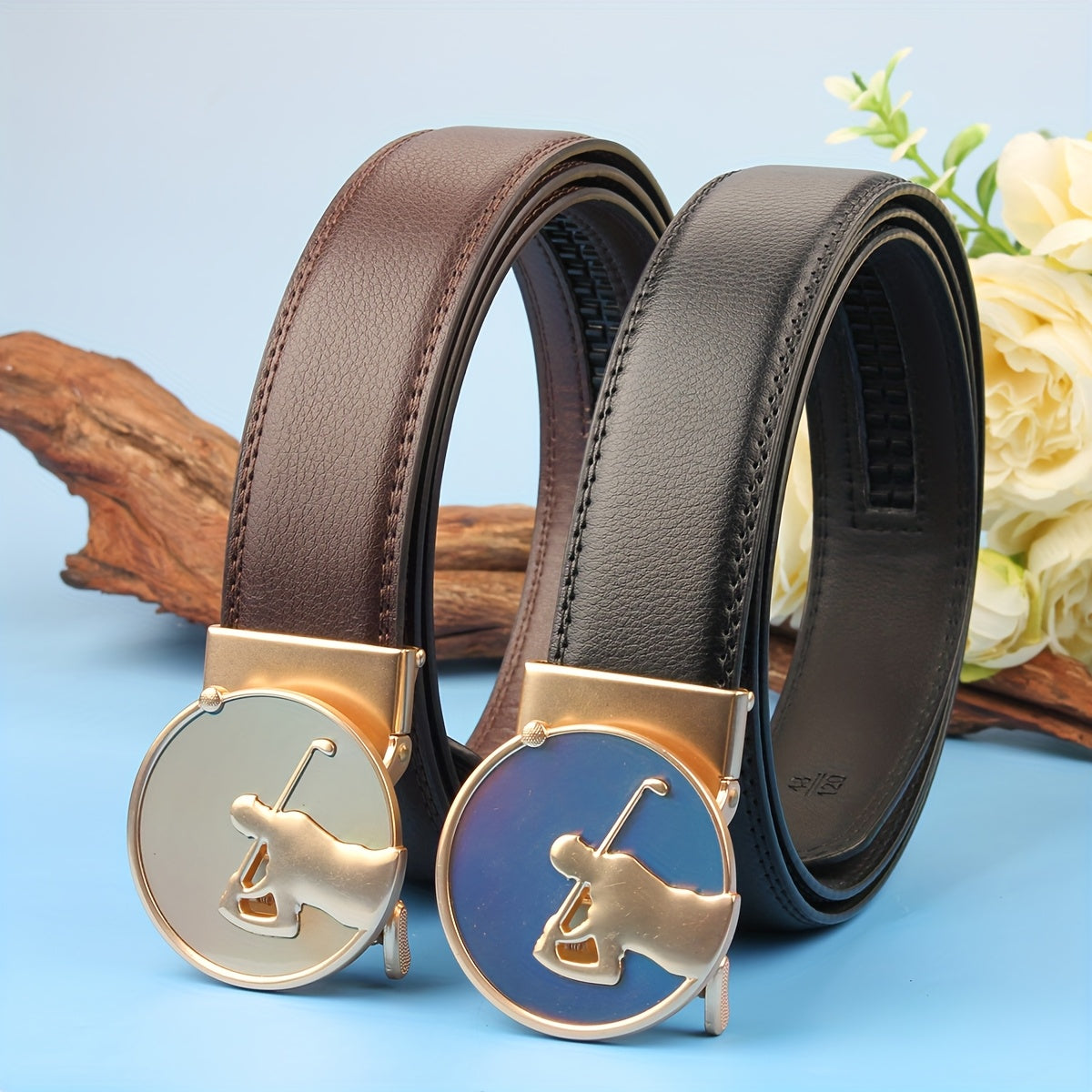 Elevate your style with this coffee-colored automatic buckle belt designed for casual and business attire. It features a 3-inch width and an extended length for a comfortable fit.