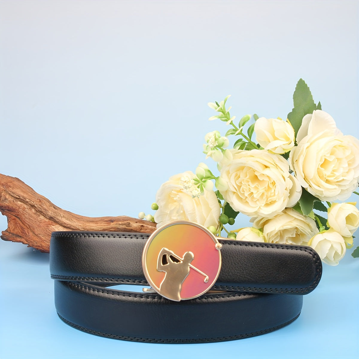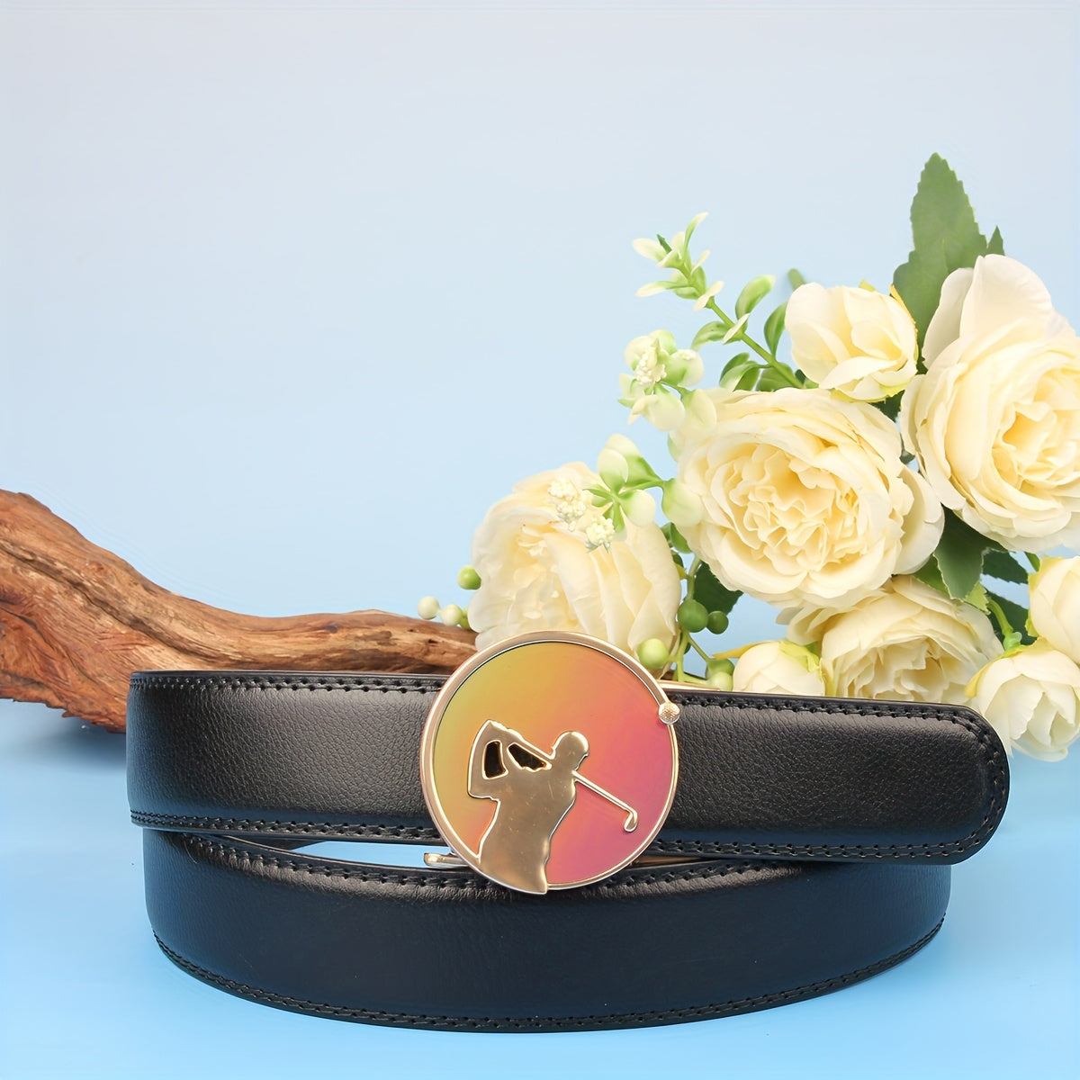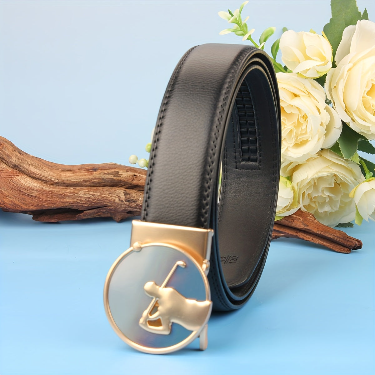 Elevate your style with this coffee-colored automatic buckle belt designed for casual and business attire. It features a 3-inch width and an extended length for a comfortable fit.