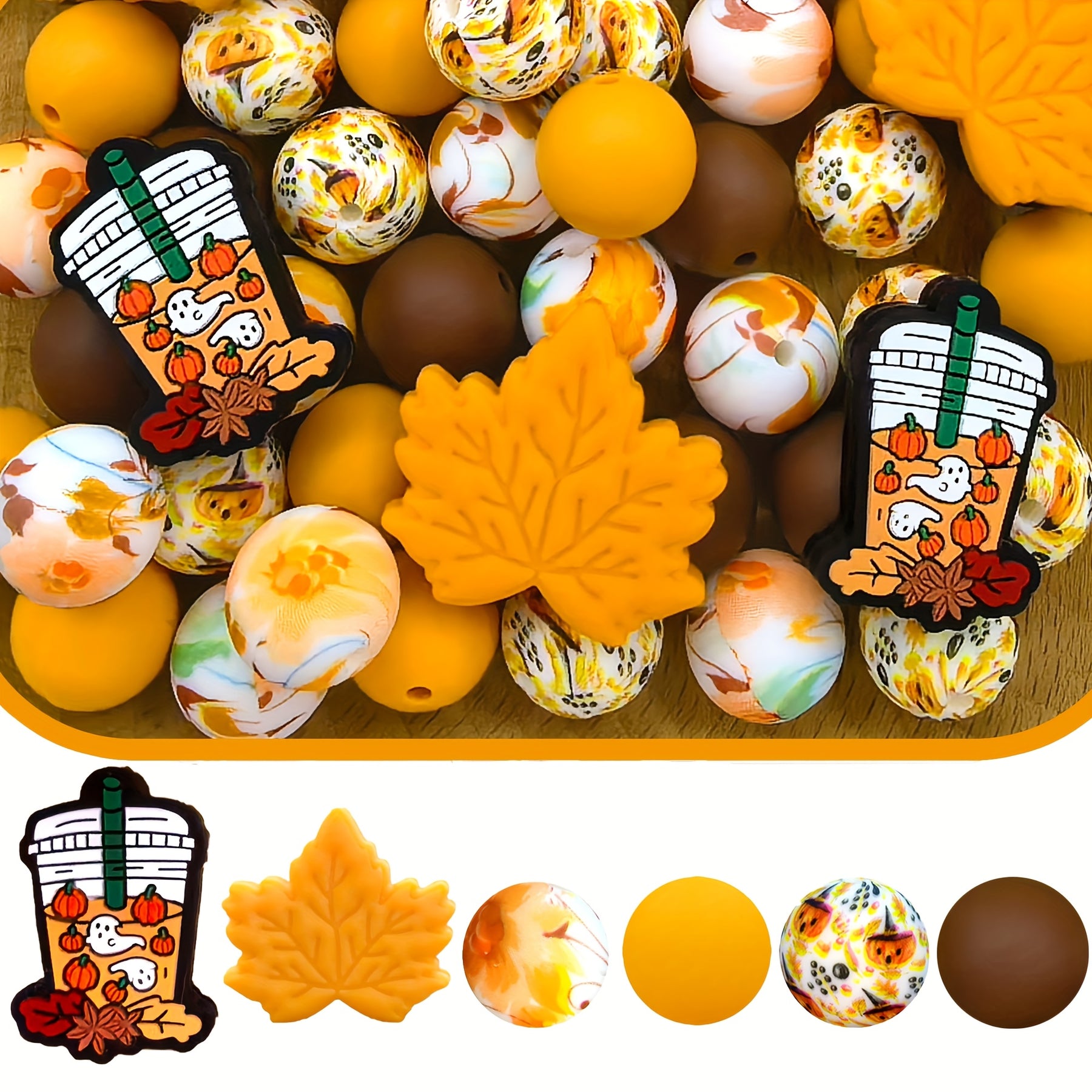 • 28 pieces of silicone beads in autumn theme