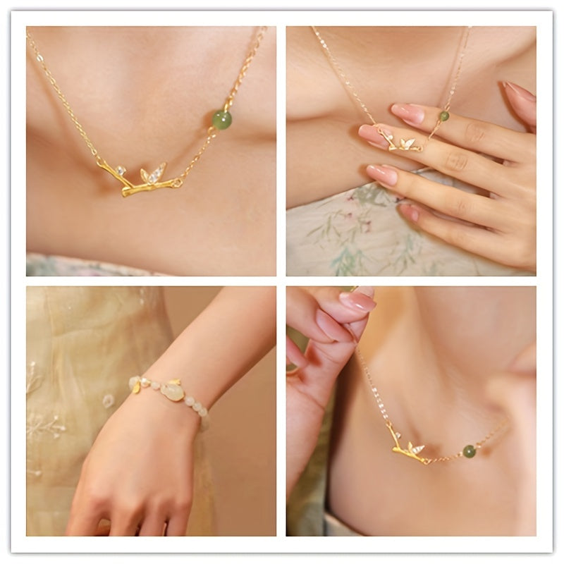 Elegant set of bamboo and jade necklaces, crafted with Tianyu bamboo for a touch of natural beauty.