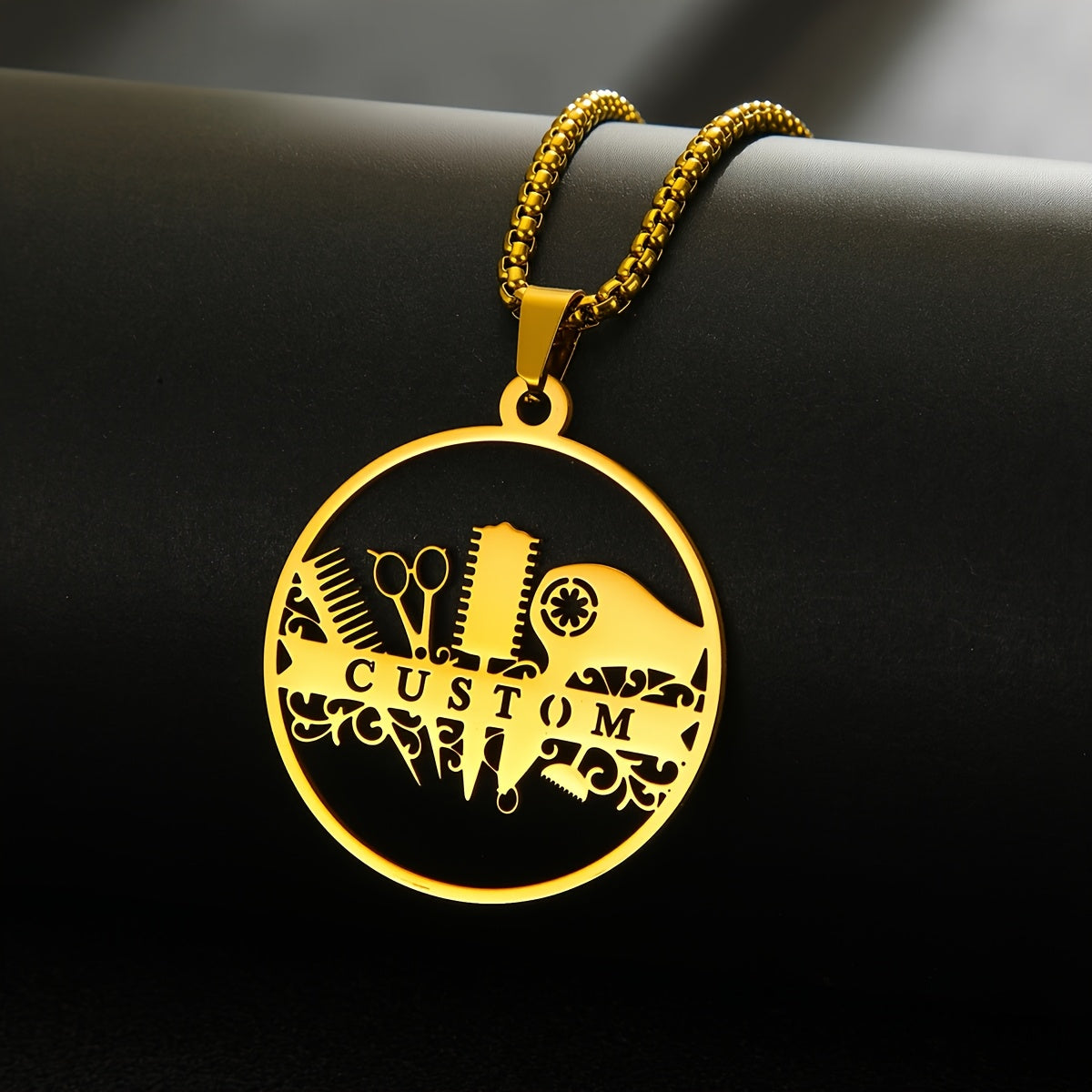 This stylish Barber Necklace is crafted from high-quality stainless steel with a golden tone finish, making it durable and suitable for daily wear. It also makes a great gift for barbers or hair enthusiasts.