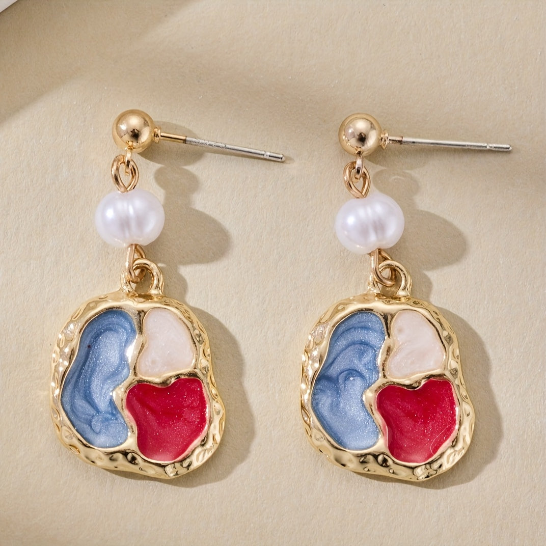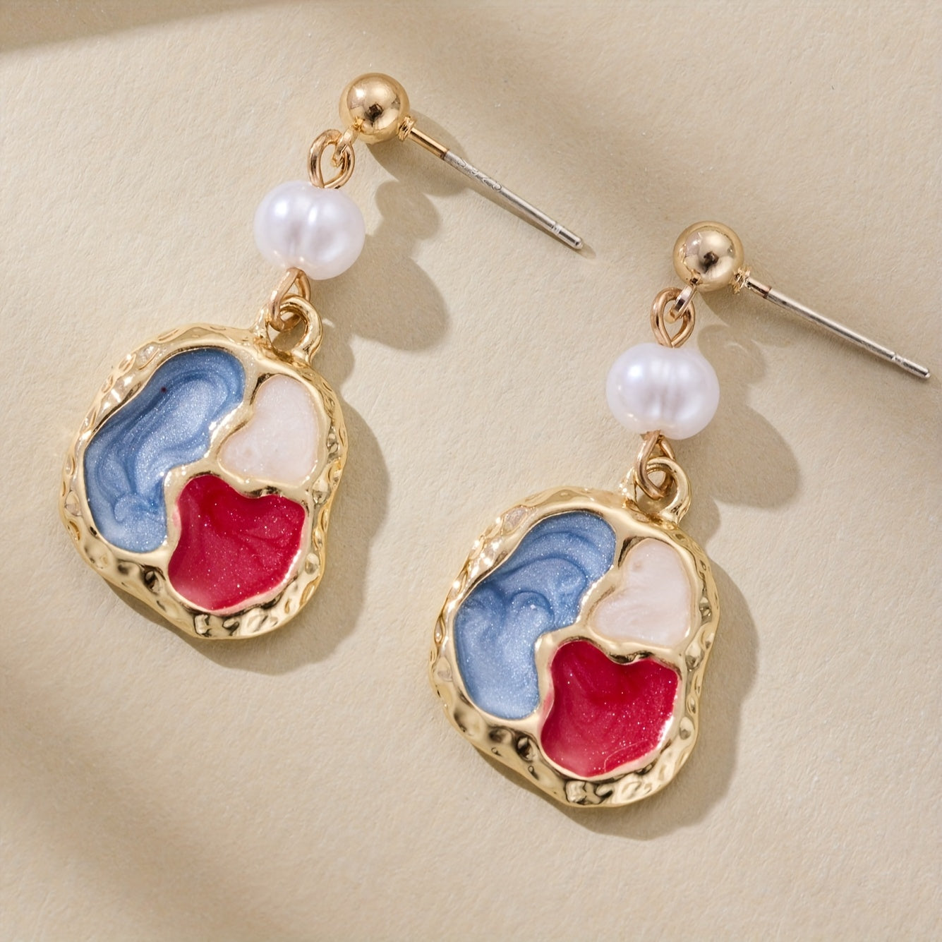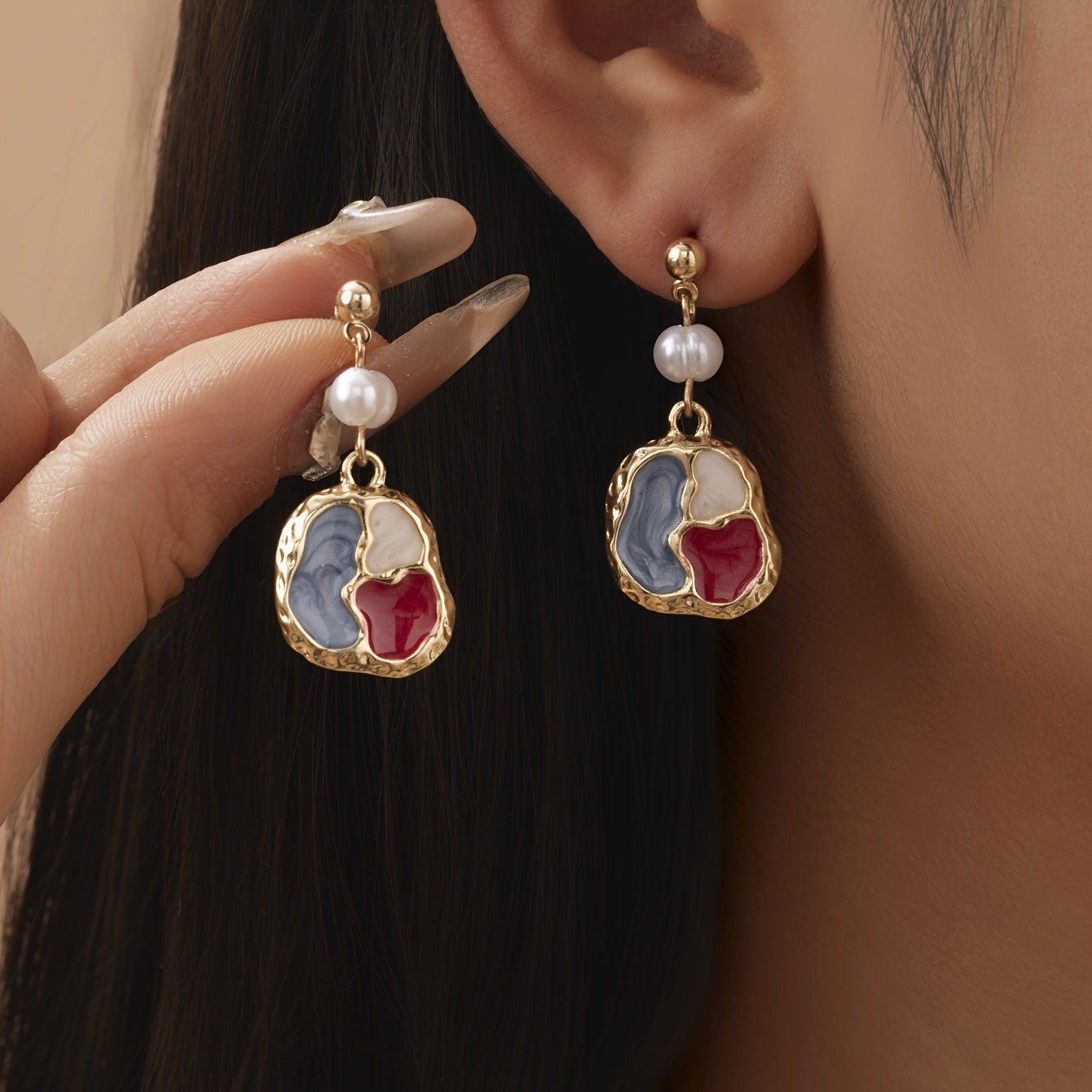 Baroque Earrings 14K Gold Plated Vintage French Style Mix Pink Red Dangle
