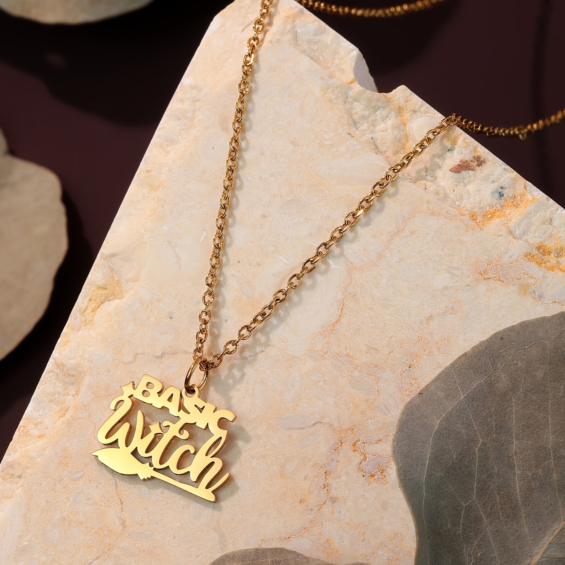 This witch broom necklace is the perfect accessory for Halloween, featuring a stainless steel chain with an engraved broomstick pendant. Ideal for women and men.