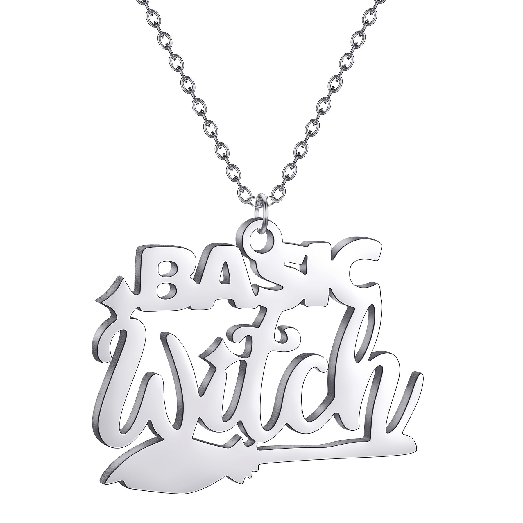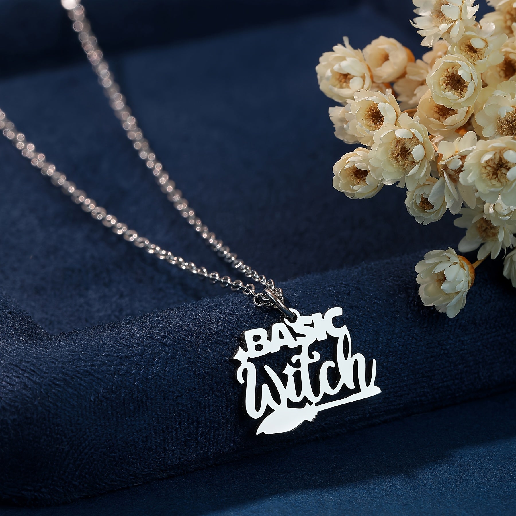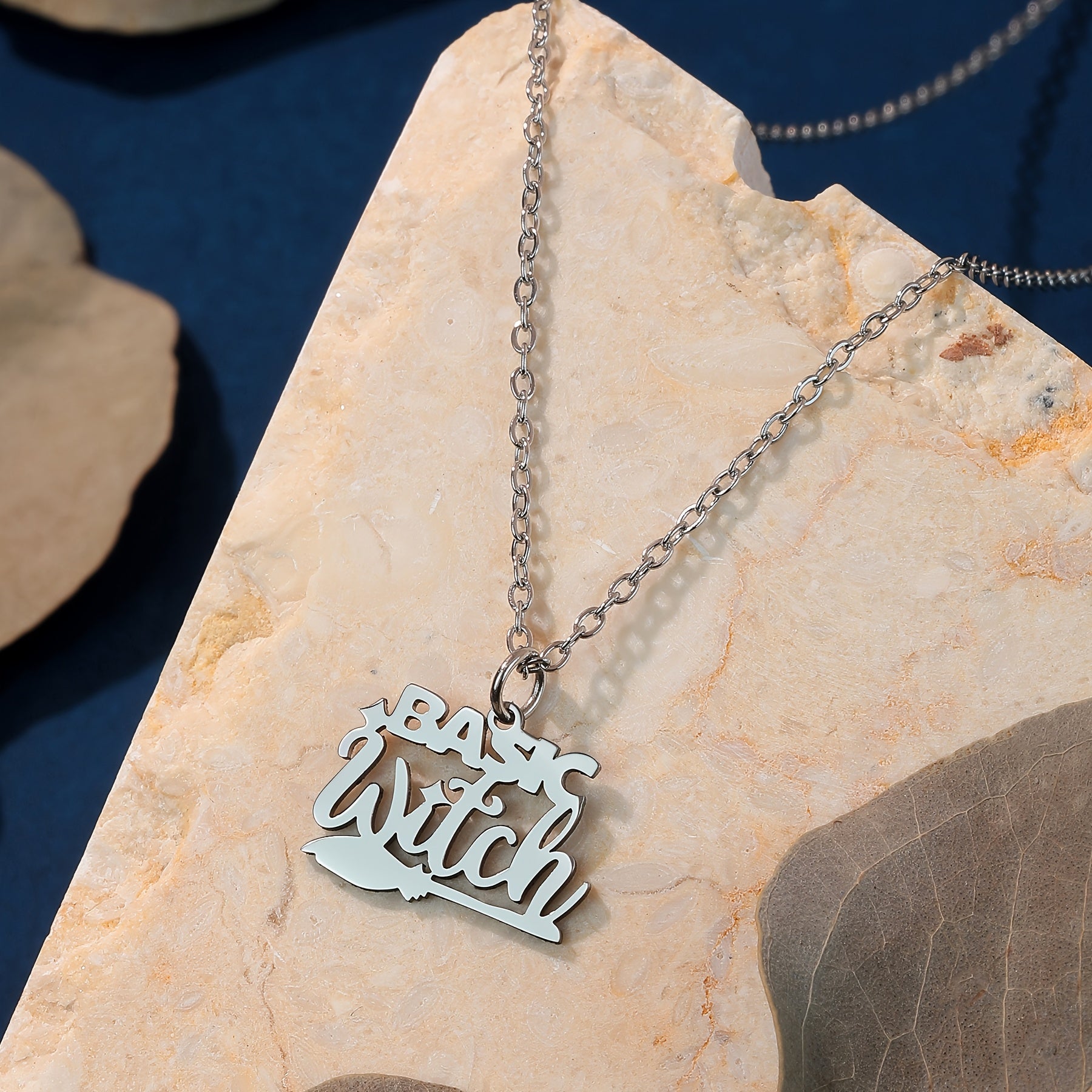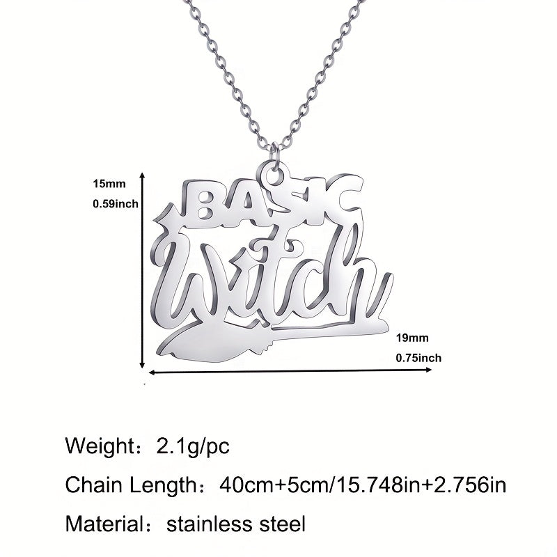Basic Witch Broom Necklace Stainless Steel Chain Choker Halloween Spooky Jewelry