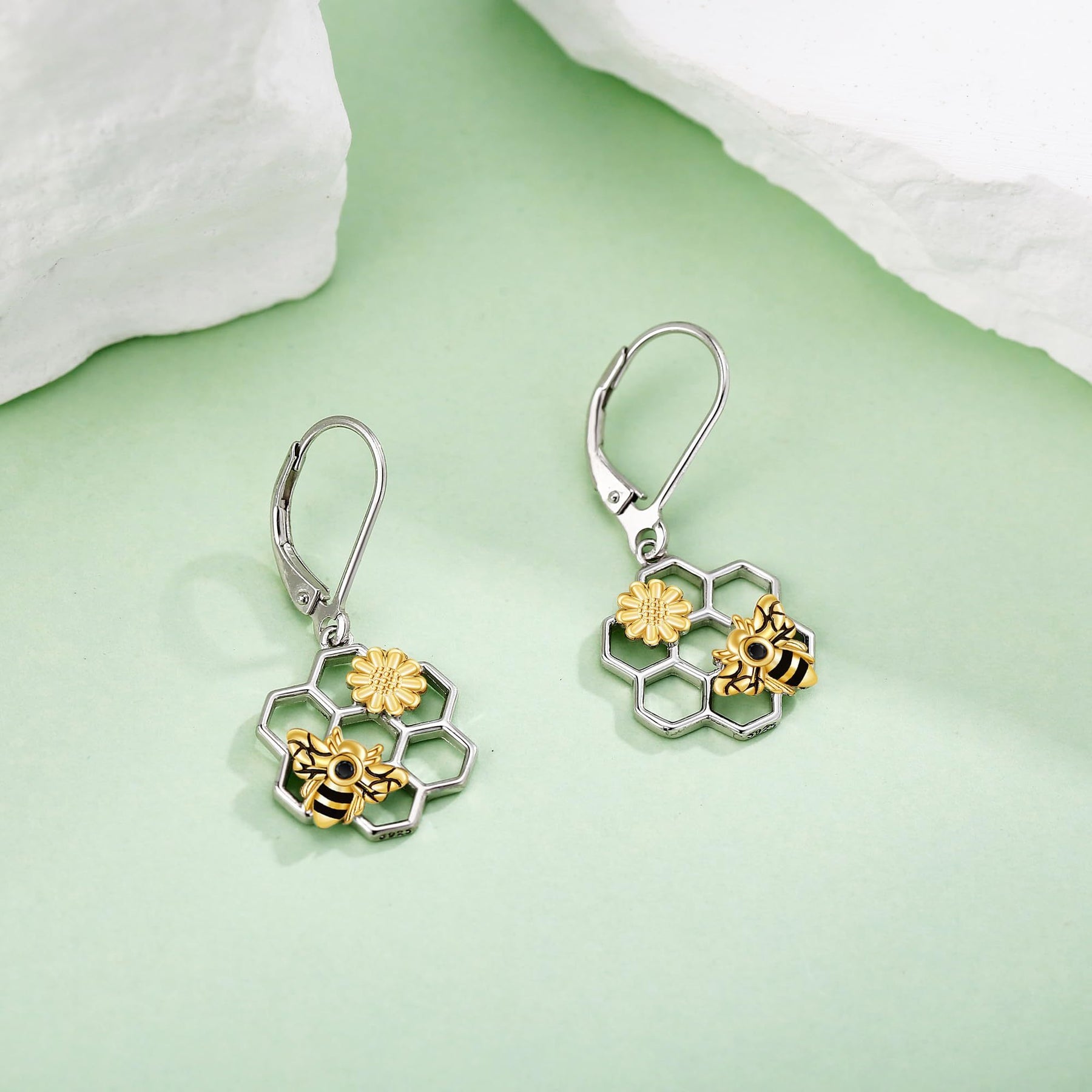 These beautiful bee earrings are crafted from 925 sterling silver, featuring a honeycomb pendant design. Perfect as a Christmas gift for bee jewelry lovers.