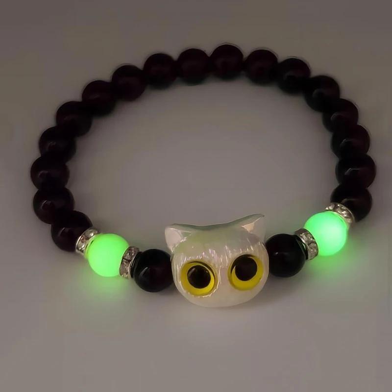 Big Eye Cat Luminous Bracelet Glass Beaded Hand Chain Vintage Style