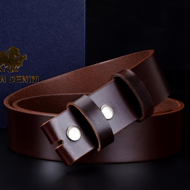 This Bison Denim leather belt is a versatile accessory for men, suitable for both casual and formal wear. Made of durable leather, it's a perfect Father's Day gift.