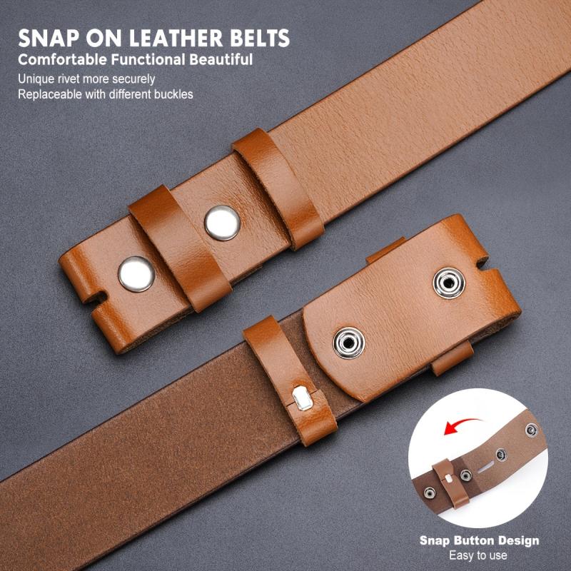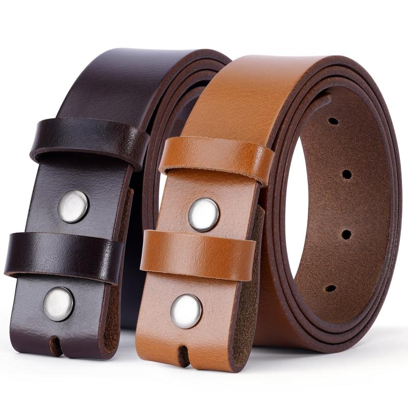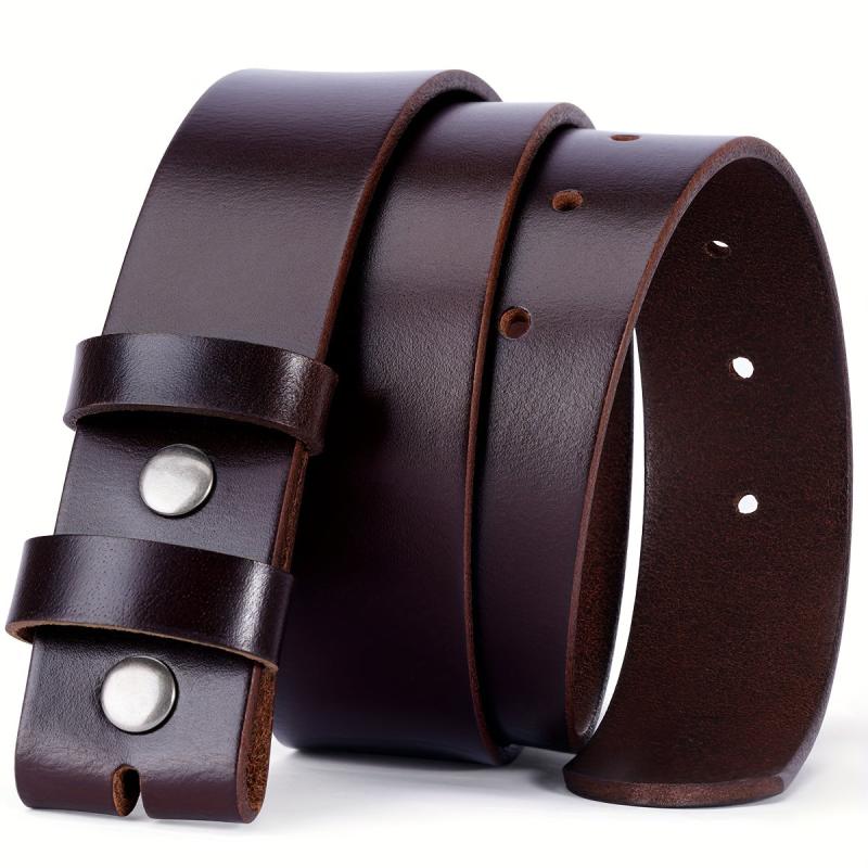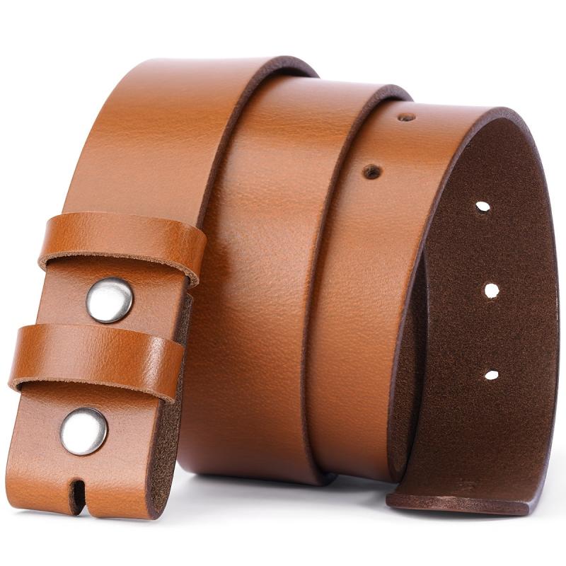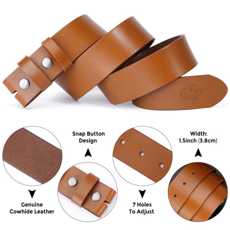 BISON DENIM Leather Belt Adjustable No Buckle & Brown Vintage Style Belts