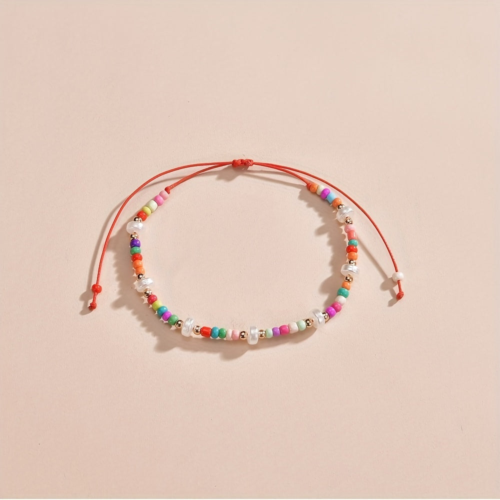 Elevate your style with this Bohemia anklet featuring colorful rice beads. The adjustable design ensures a comfortable fit for every woman.