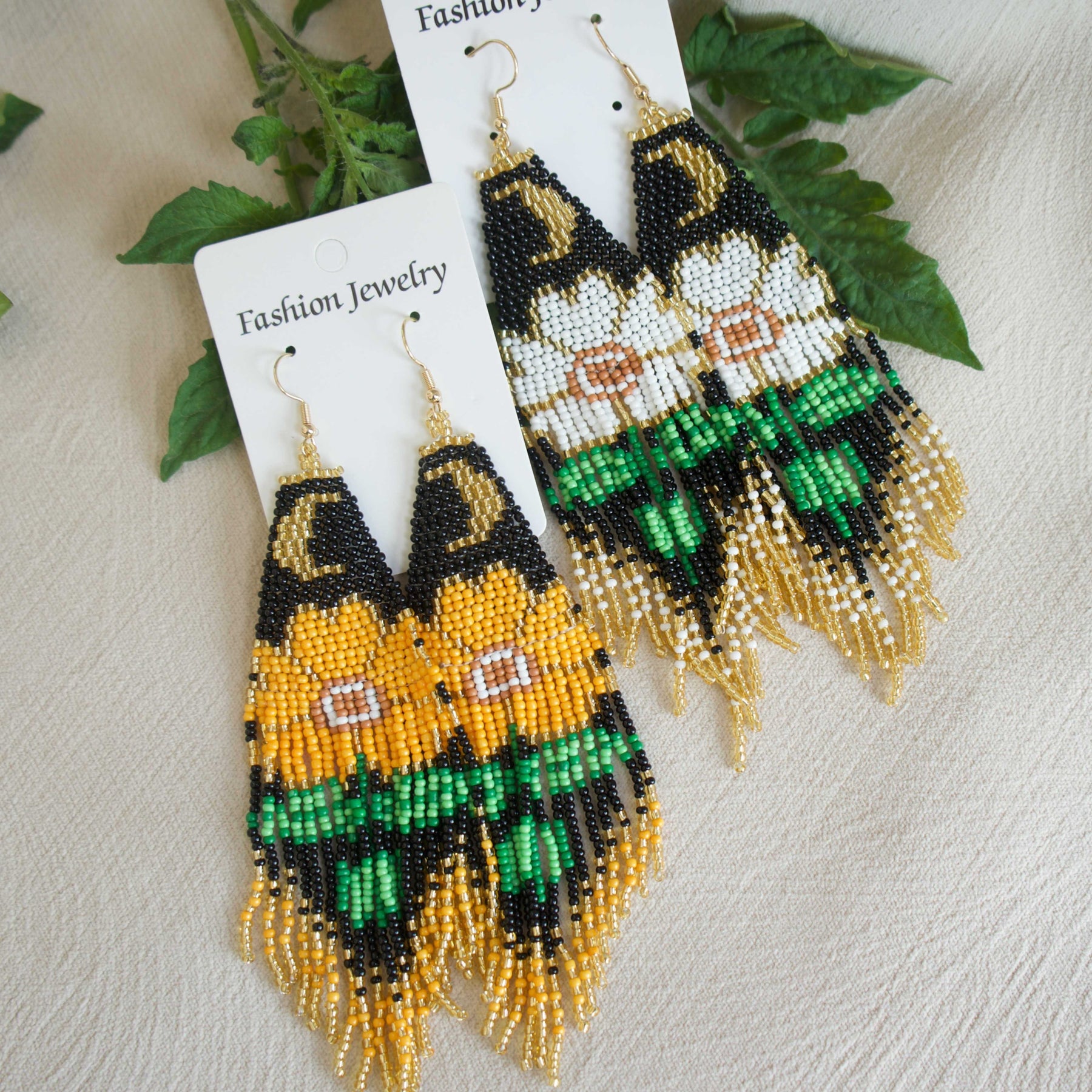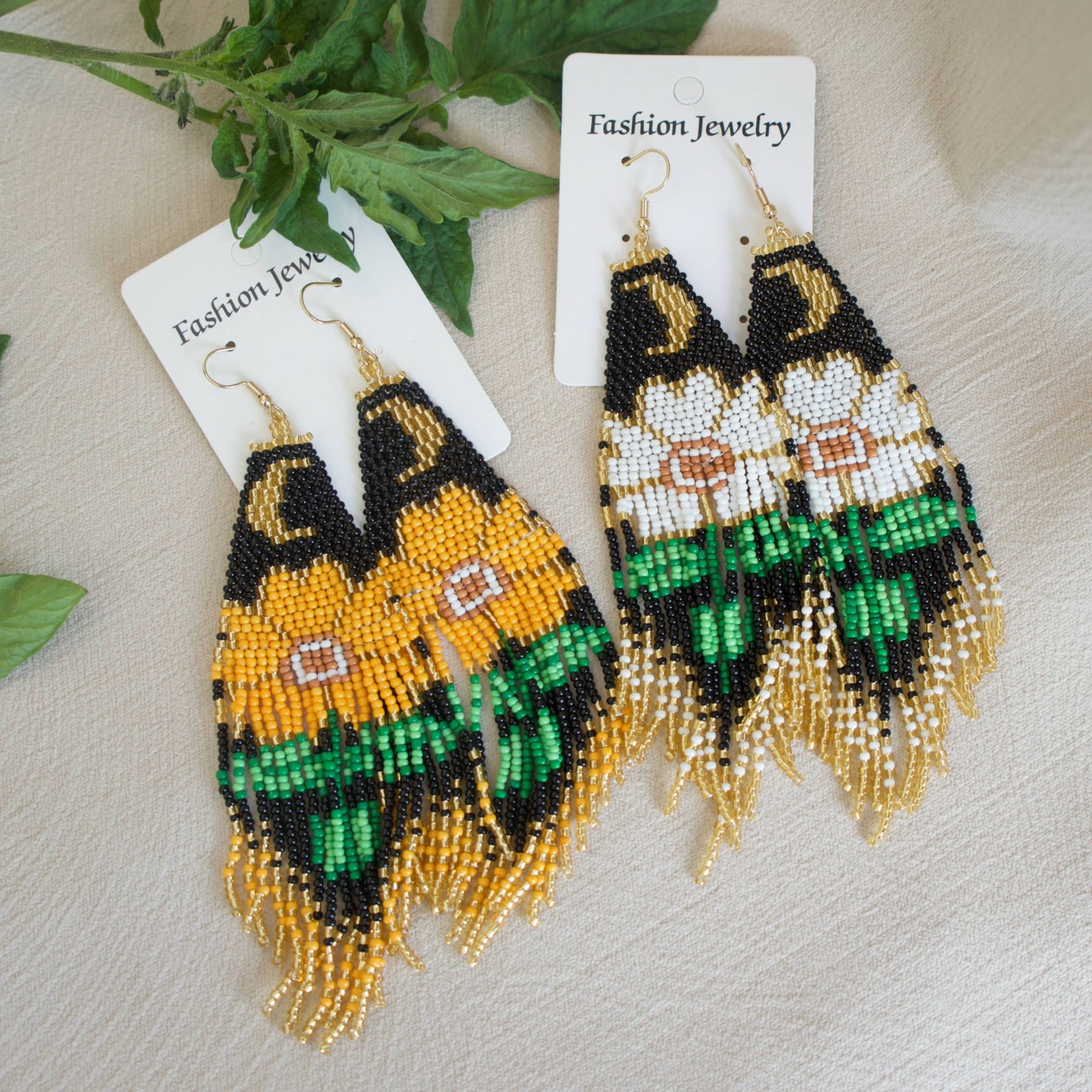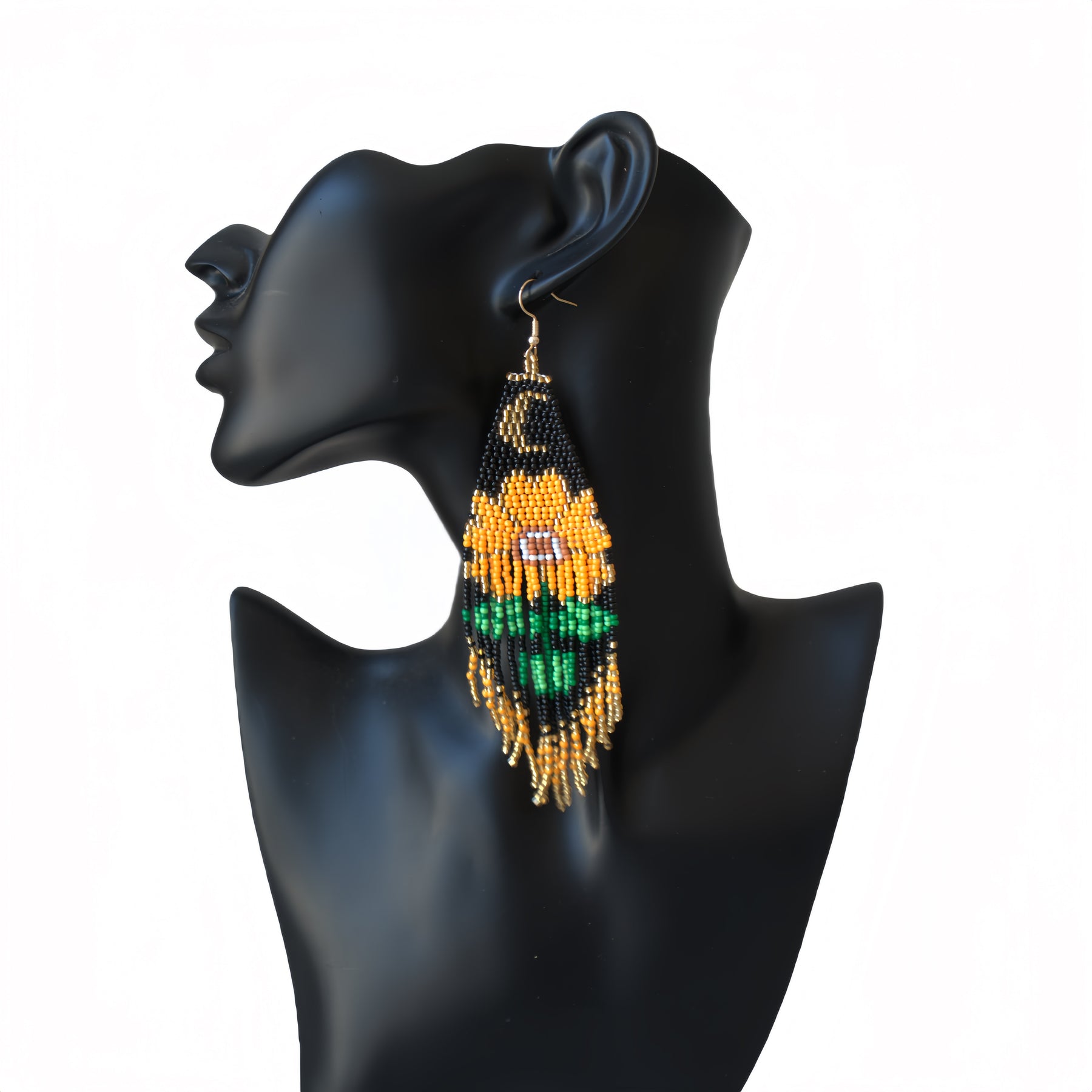 Bohemian Beaded Dangle Earrings Flower in Vintage Style