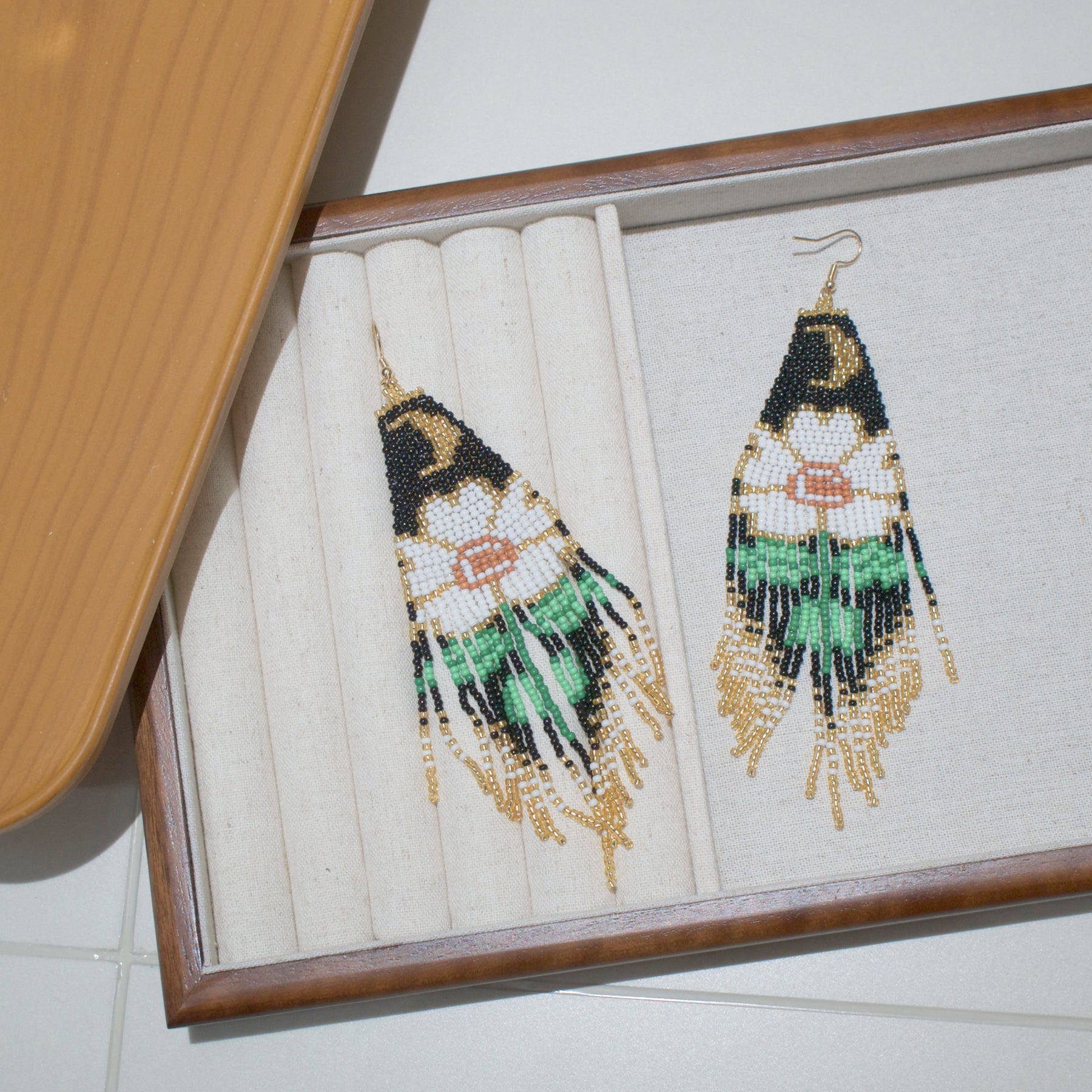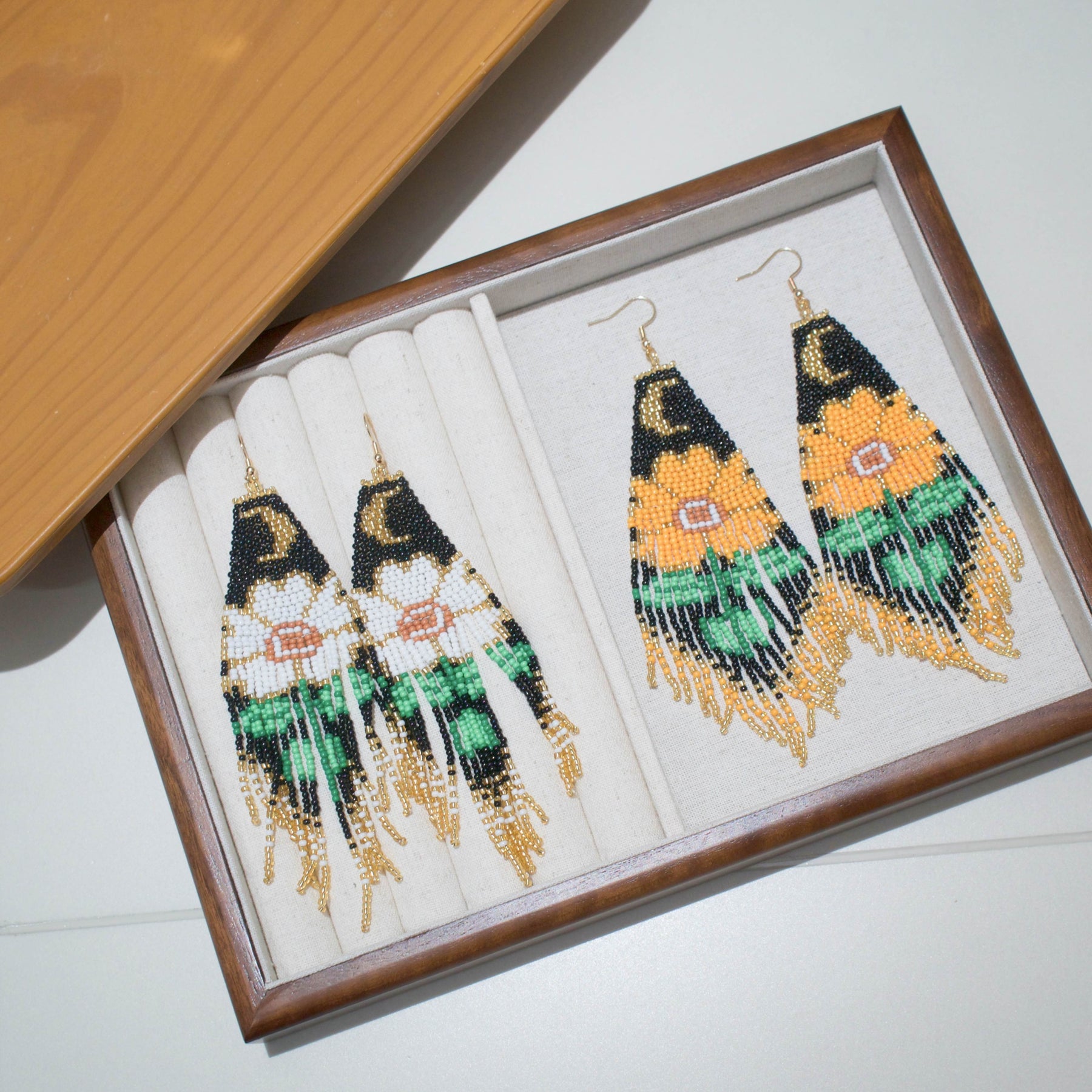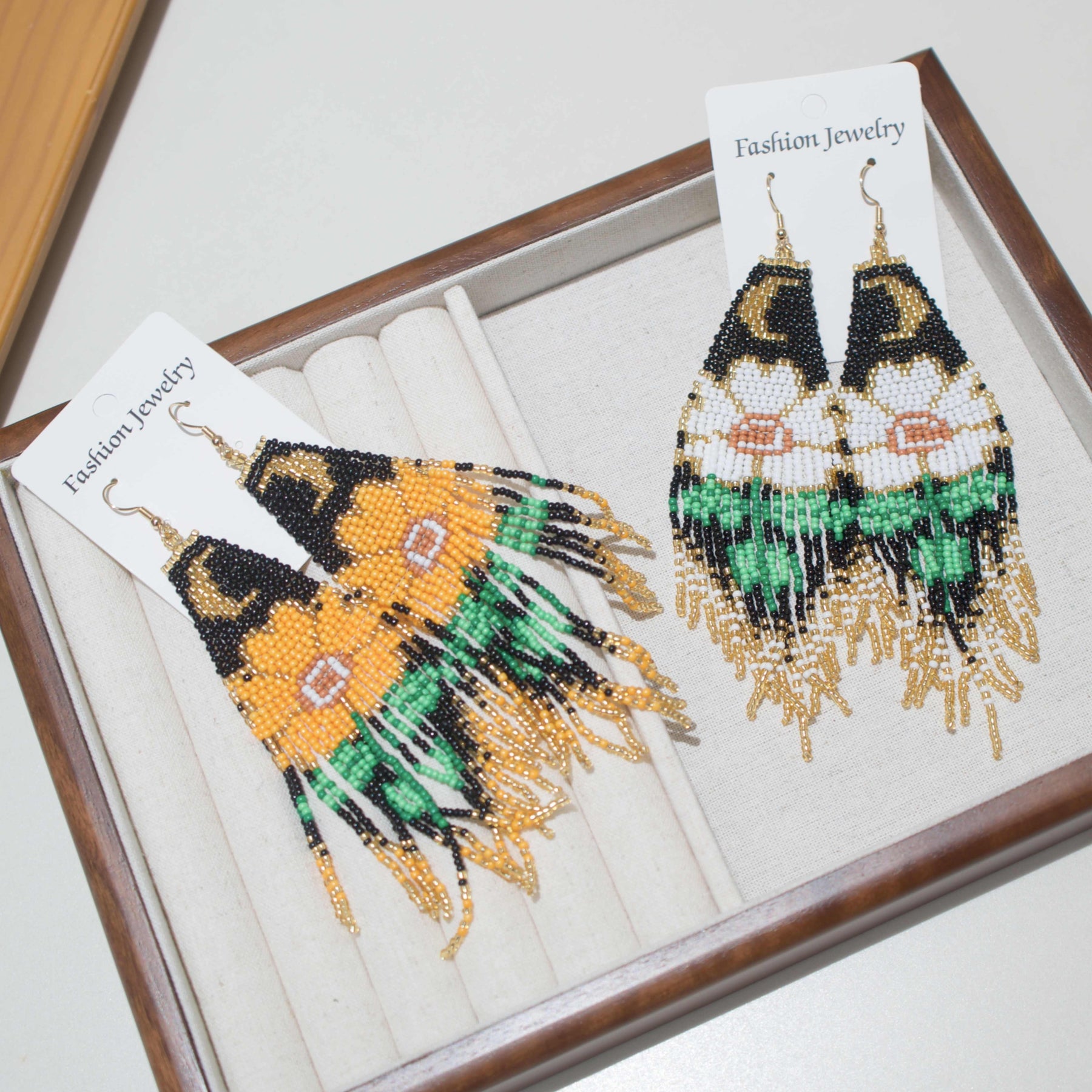 Bohemian Beaded Dangle Earrings Flower in Vintage Style