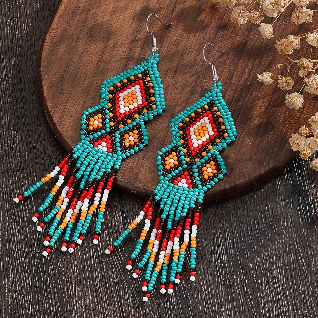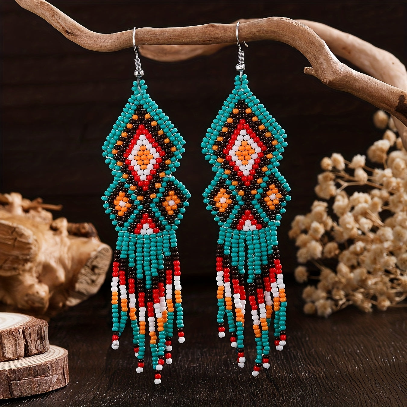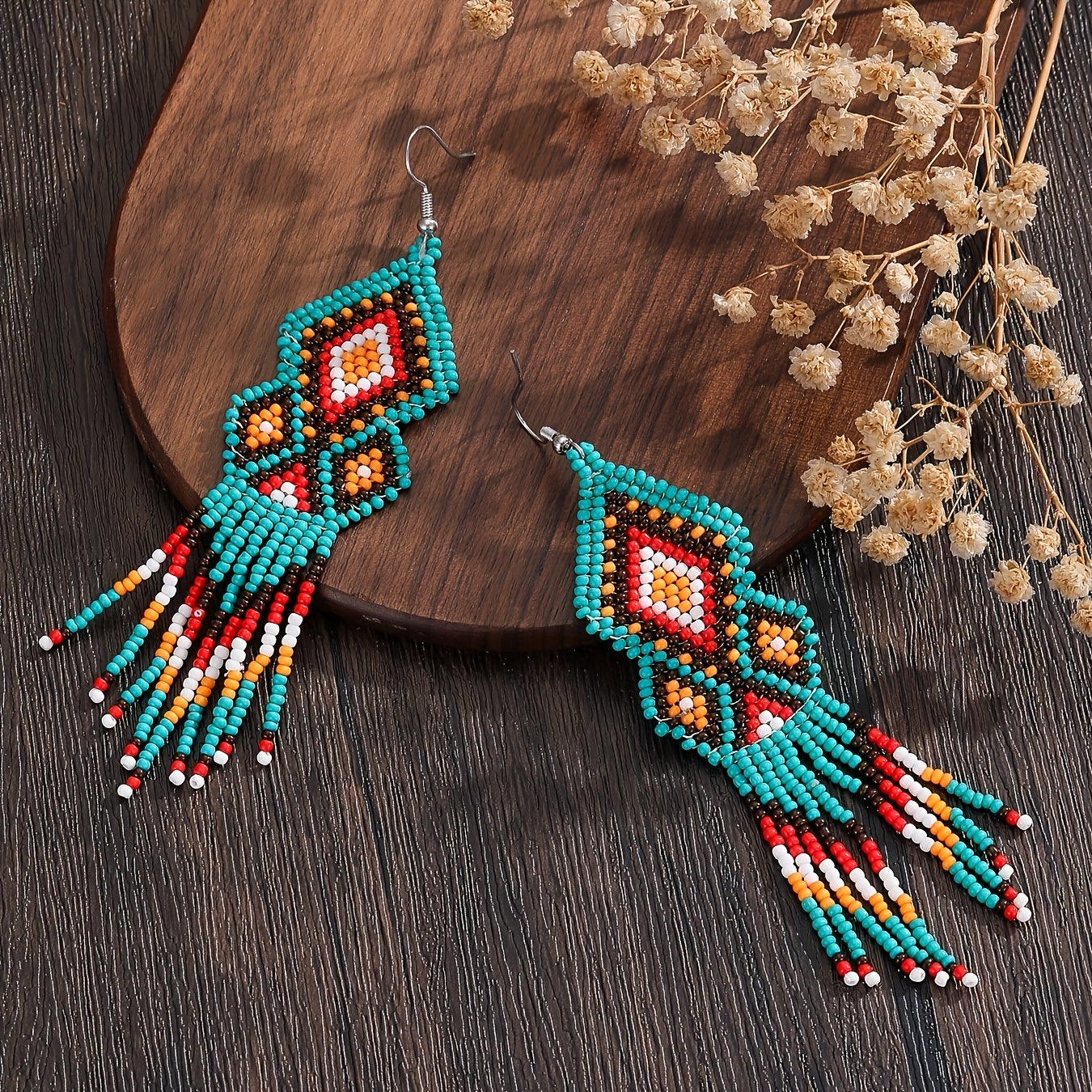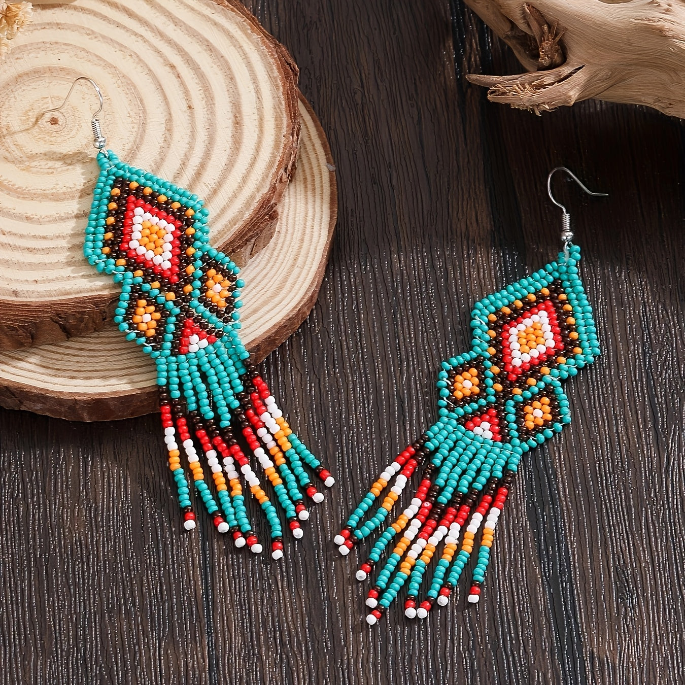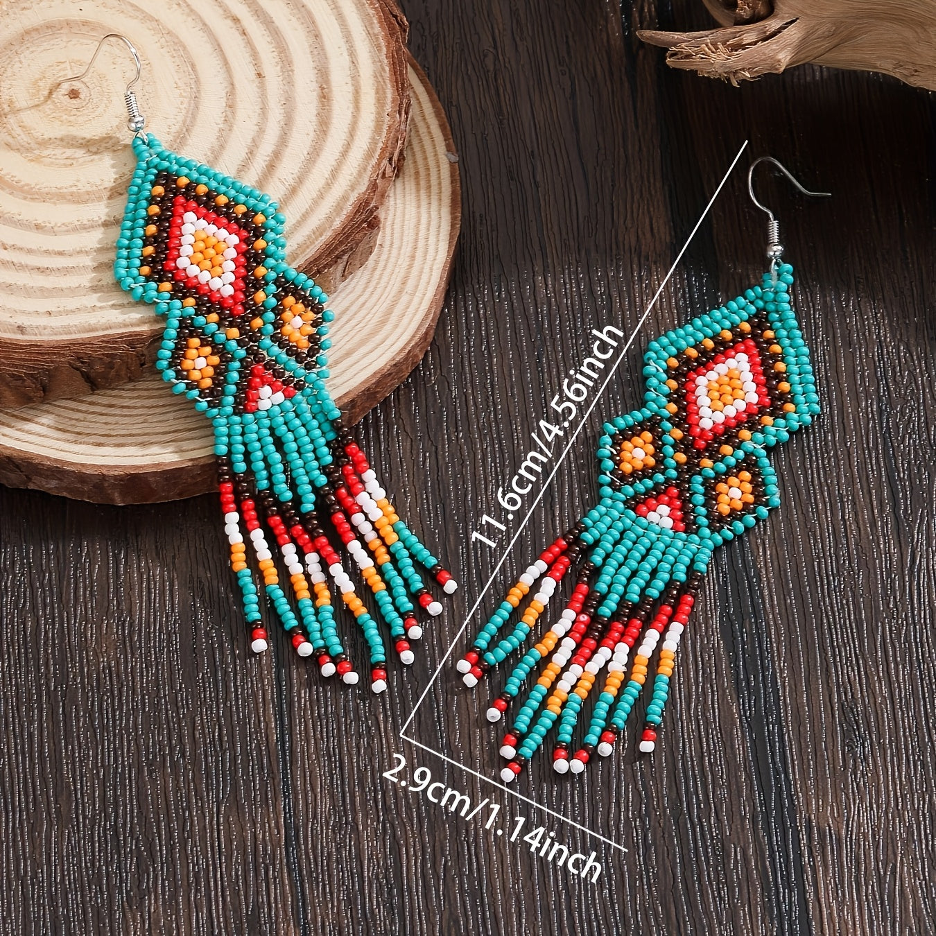 Bohemian Beaded Earrings Multicolor Geometric Tassel Glass Seed Beads