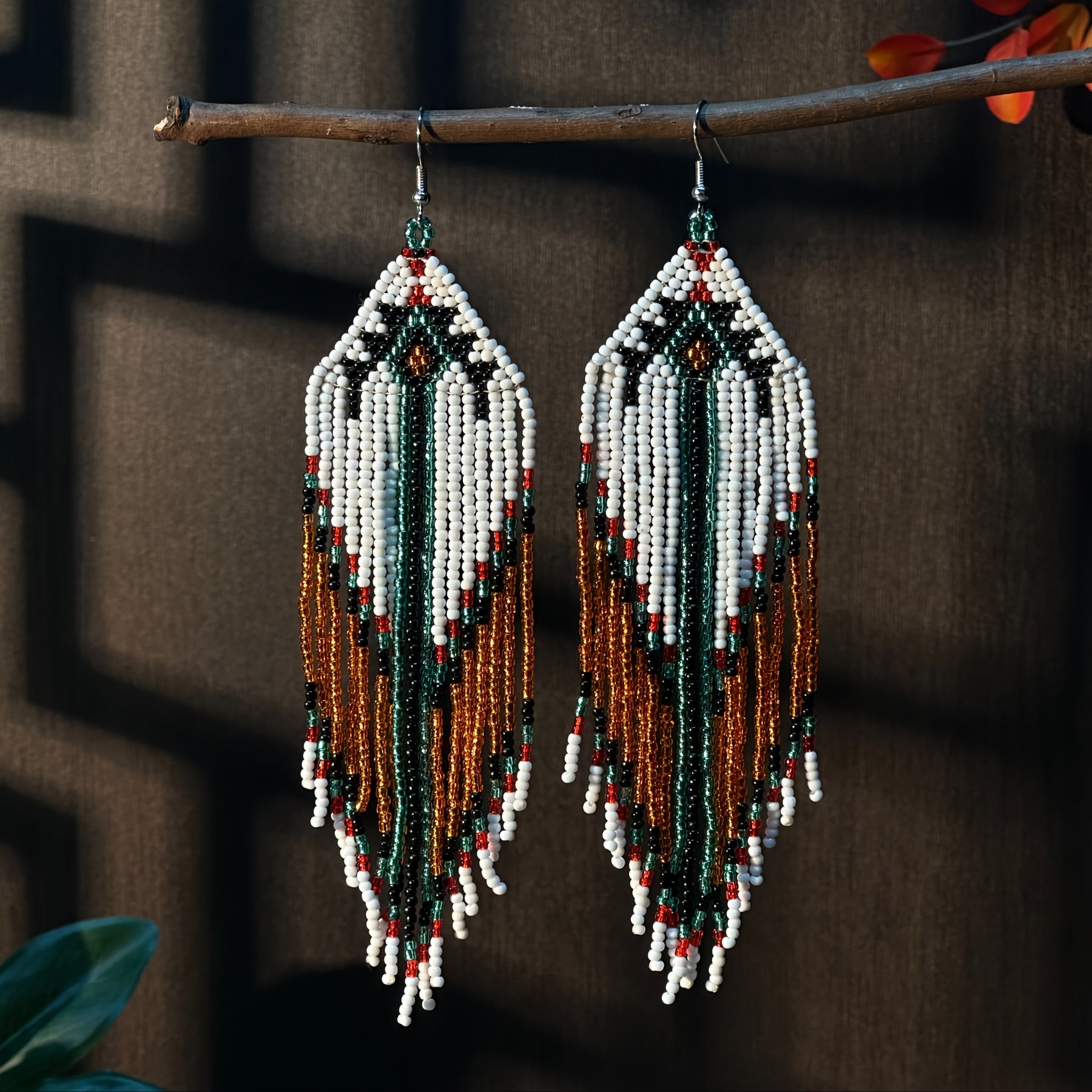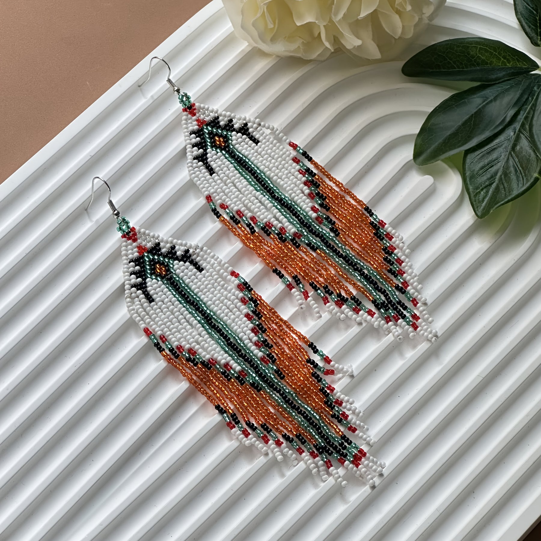 Bohemian Beaded Tassel Earrings Vintage Style Fringe Dangle Earrings