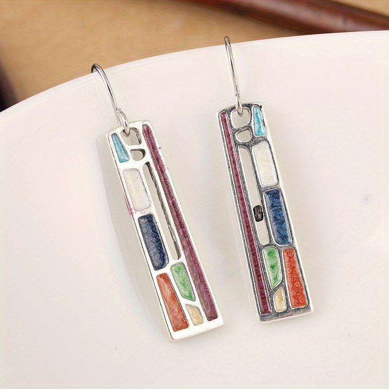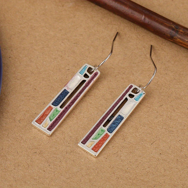 Exquisite handcrafted bohemian dangle earrings featuring a vibrant ancient pattern copper hook design. Suitable for women's engagement parties, special occasions, and casual attire. Makes a perfect gift.