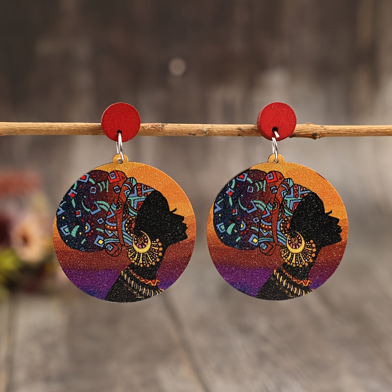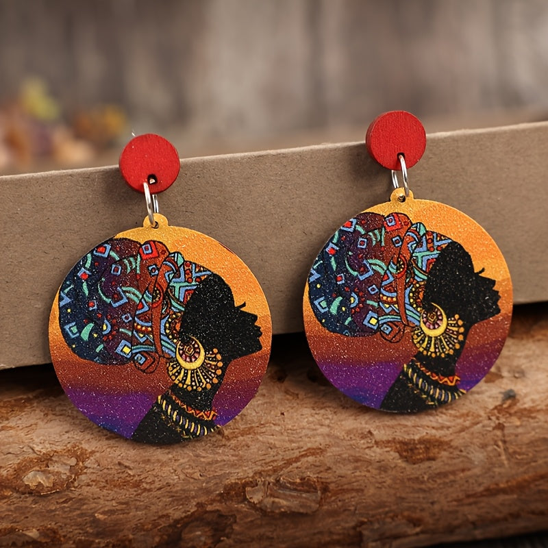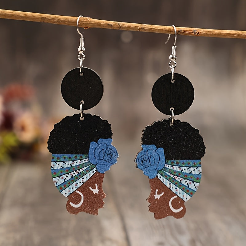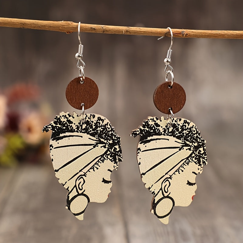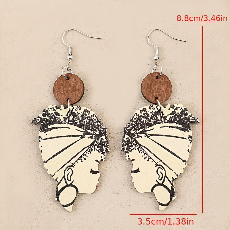 These wooden earrings feature a bohemian ethnic design, perfect for adding a vintage-inspired touch to your casual attire or as a thoughtful gift for women.